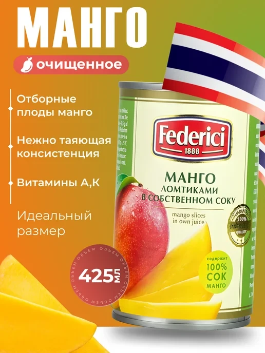 Консервы фруктовые"Segreti Dartigiano" Манго ломтики в сиропе ж/б 425 мл.