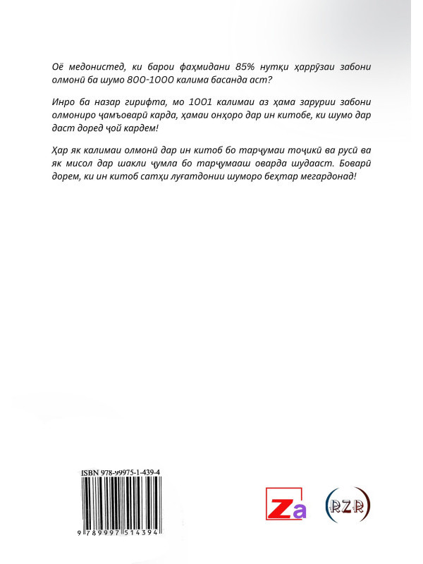 "Китоби '1001 калимаи зарурӣ' як роҳнамои содда ва муфид барои онҳое мебошад, ки мехоҳанд забони олмониро аз асосаш омӯхта, луғати худро ғанӣ гардонанд."