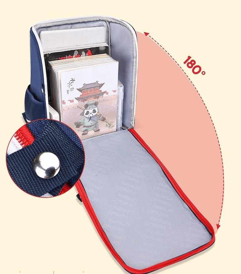 Отделения: Вместительное основное отделение для книг, игрушек и других необходимых вещей, а также боковые сетчатые карманы для мелочей.