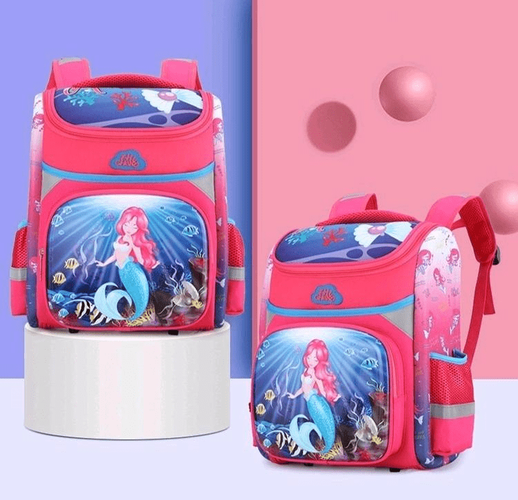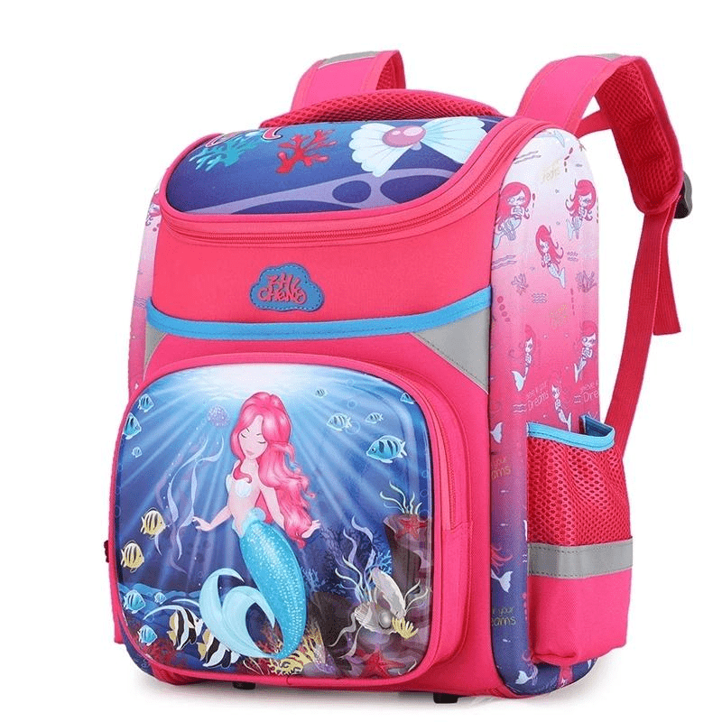 Отделения: Вместительное основное отделение для книг, игрушек и других необходимых вещей, передний карман с иллюстрацией русалки, боковые сетчатые карманы для мелочей.