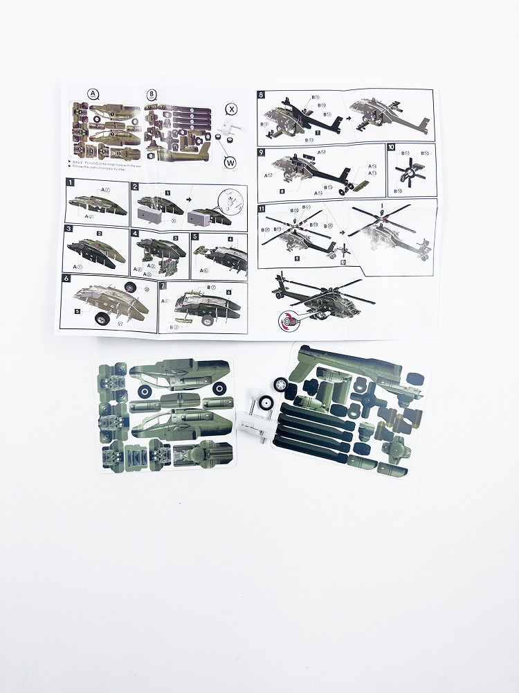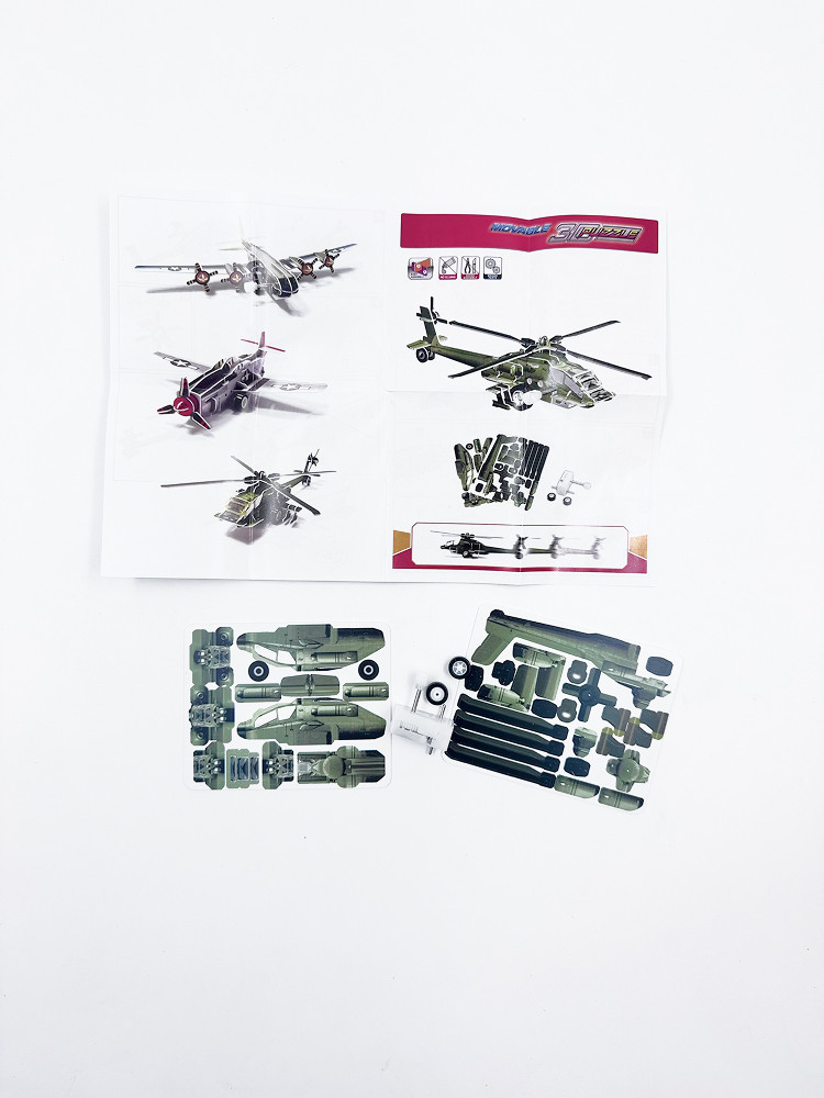 Собери реалистичную модель военного вертолета своими руками! Конструктор-пазл с заводным механизмом — отличный способ увлекательно провести время и развить пространственное мышление. Детали выполнены из прочного пенополистирола и металла, не требуют ножниц и клея. После сборки модель самостоятельно едет вперёд благодаря встроенному механизму.