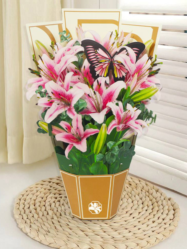 Эта великолепная 3D-открытка с букетом лилий – изысканный и элегантный подарок, который заменит живые цветы и сохранит свою красоту навсегда. ??