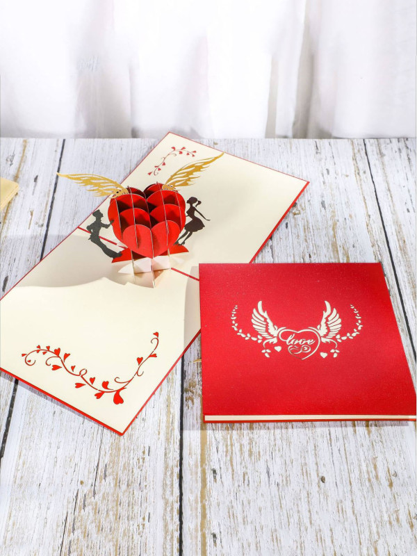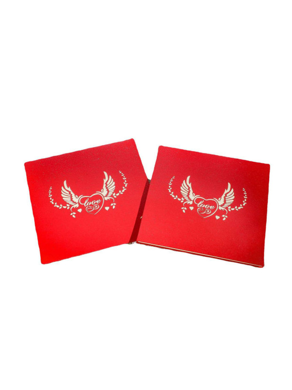 Этот великолепный 3D-открытка-сюрприз – настоящее произведение искусства, наполненное романтикой и волшебством. При открытии она превращается в объемную композицию с красным сердцем, украшенным золотыми крыльями, символизирующими любовь, свободу и вдохновение.