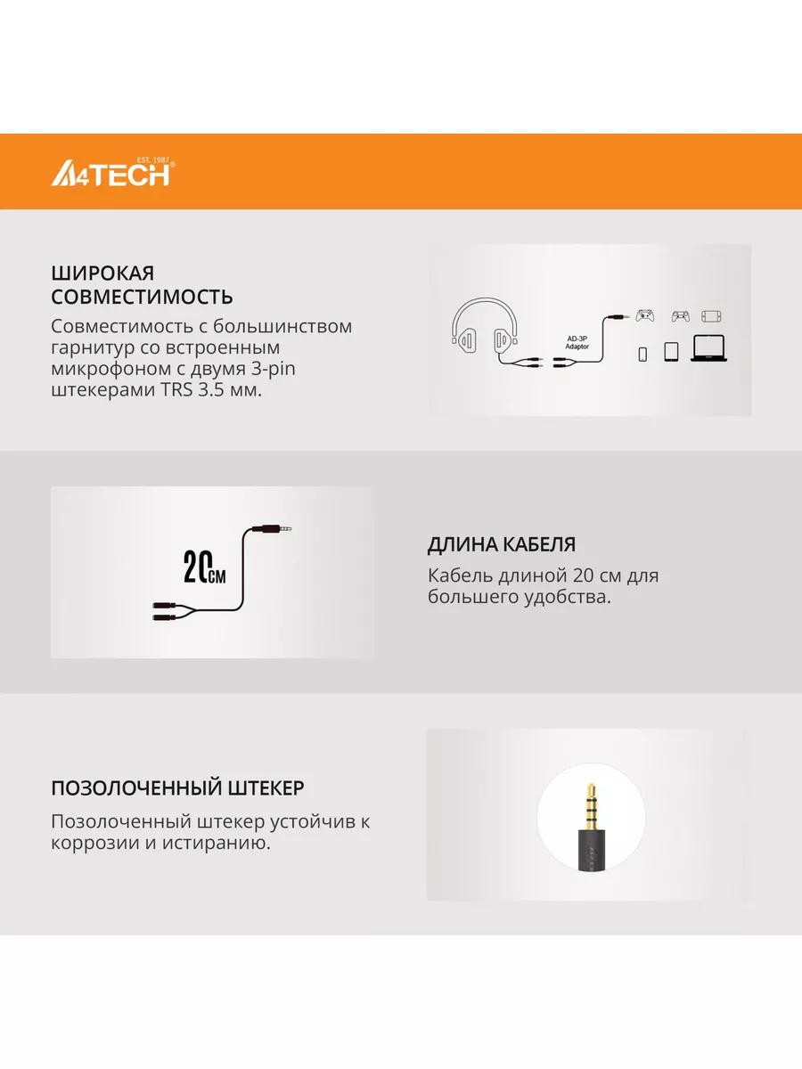 Компания A4Tech, один из ведущих производителей периферийных устройств, расширяет ассортимент аудиотехники и начинает выпускать аудиоадаптеры. Первыми в продажу поступили модели AD-3P и AD-4P с популярными интерфейсами Jack 3.5 mm. Устройства оснащены практичными 20-сантиметровыми кабелями и различаются по количеству гнезд (Female) и штекеров (Male).