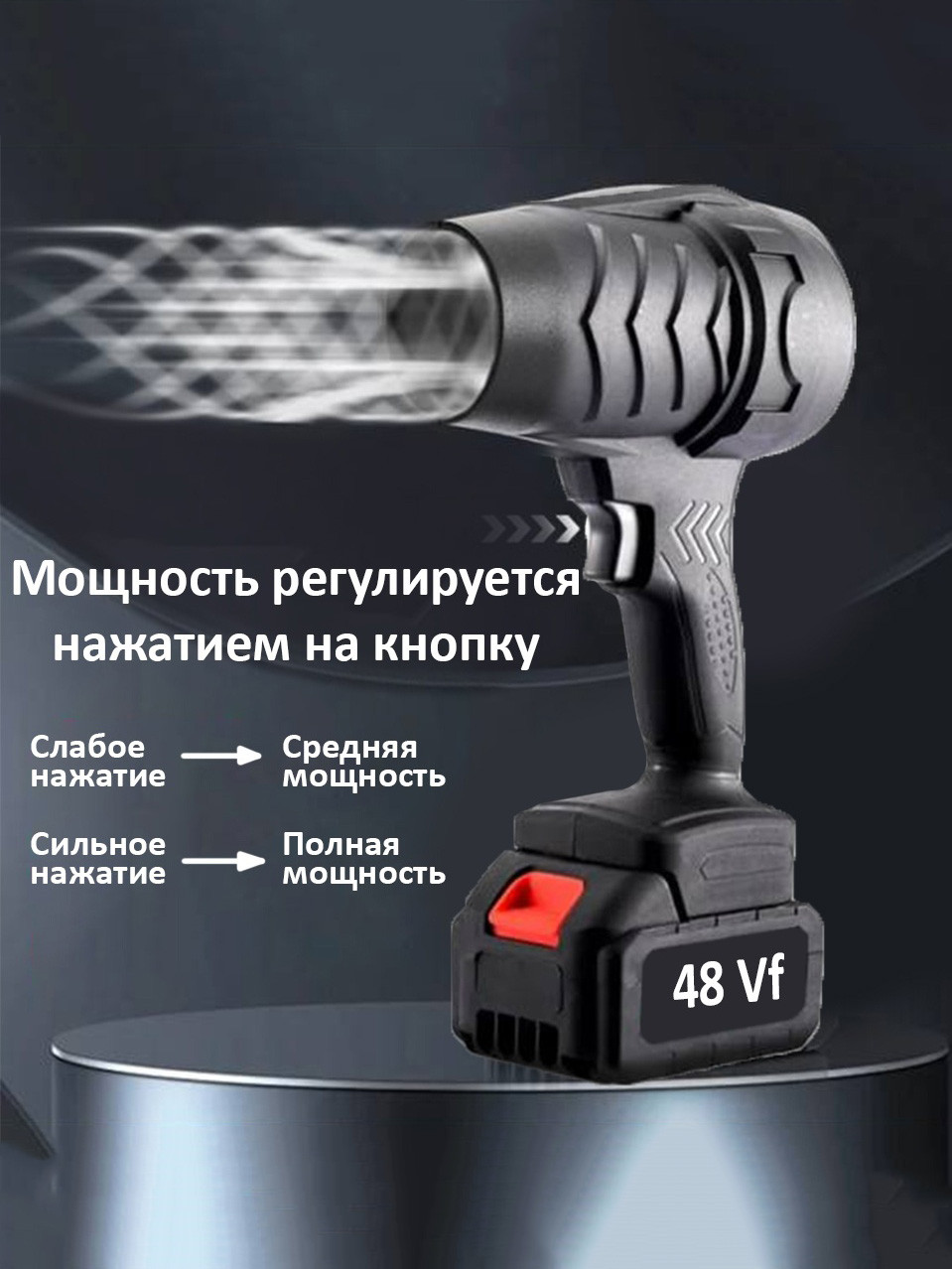Этот мощный аккумуляторный воздуходув с напряжением 48V – идеальный инструмент для работы в мастерской, гараже или на улице.