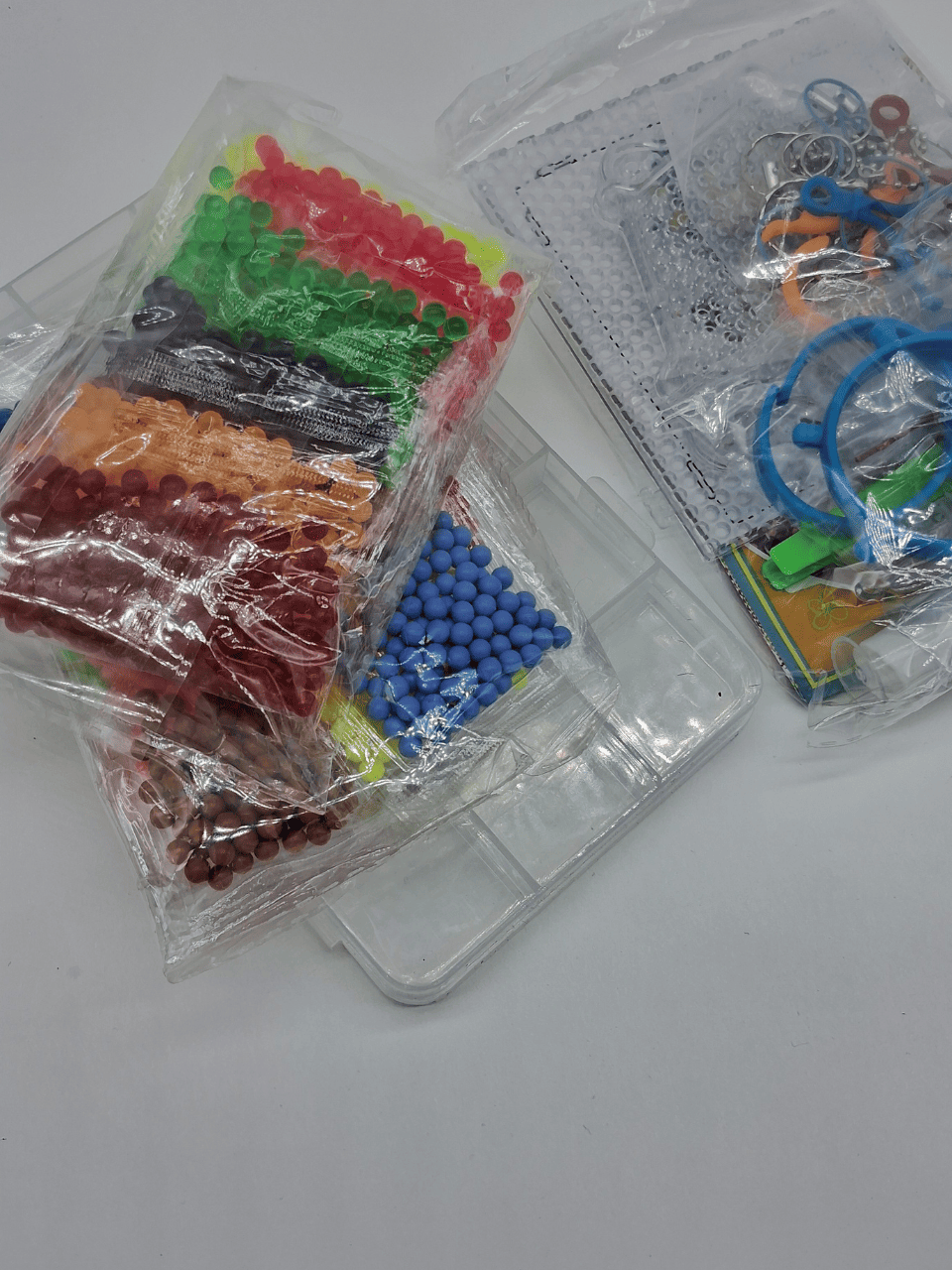 • В набор входят: разноцветные бусины, основы для выкладки бусин, пинцет, лопаточка, карабины и подвески для брелоков, распылитель для воды, инструкция. Диаметр бусин - 5 мм.