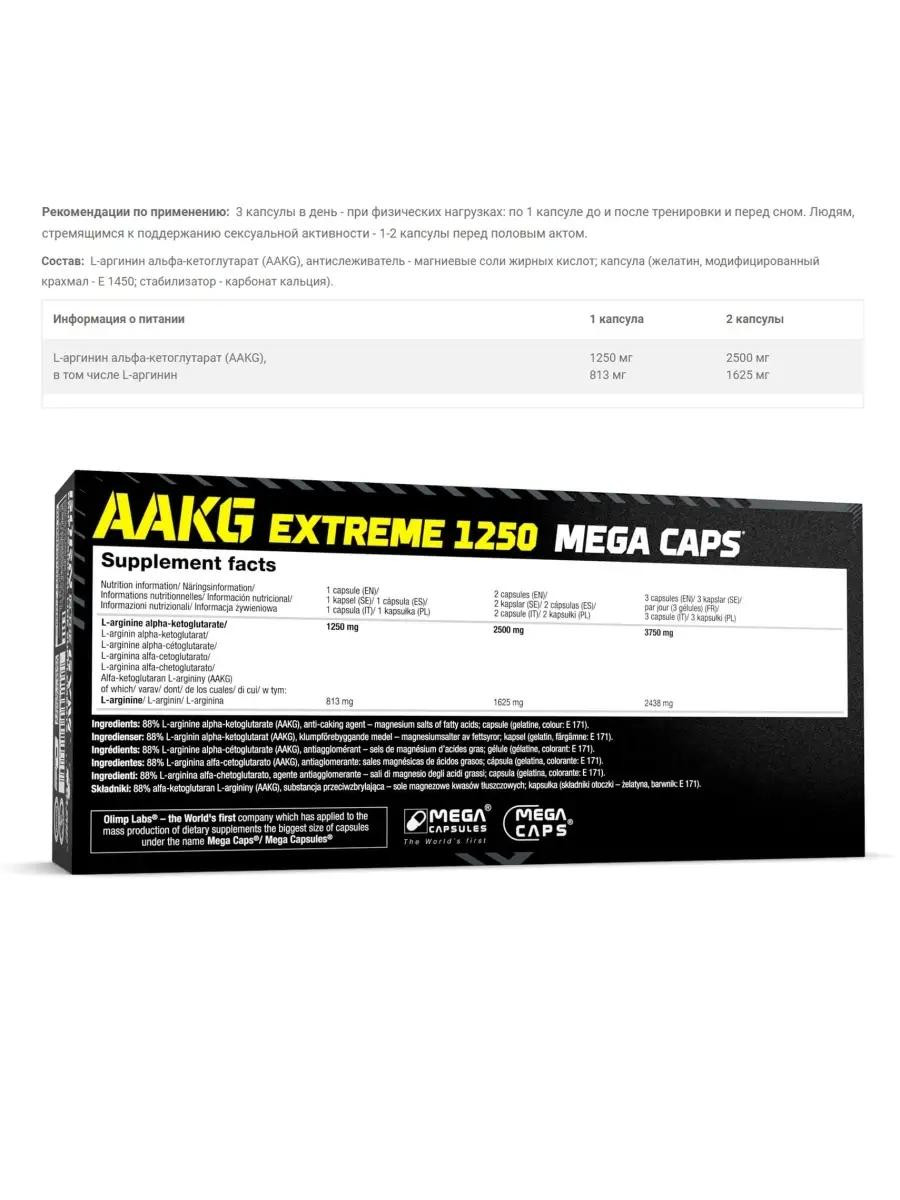 Olimp AAKG 1250 Extreme Mega Caps – лучший выбор для пампинга, выносливости и интенсивных тренировок!