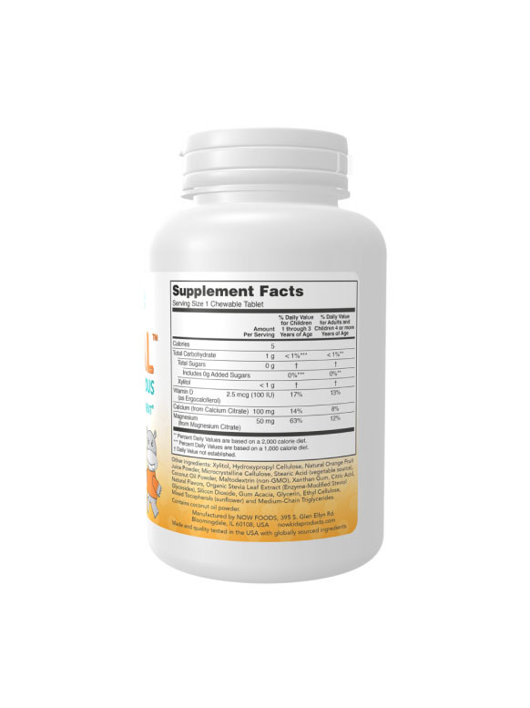 NOW Kids Kid Cal – жевательные таблетки с кальцием, магнием и витамином D (100 таблеток, без сахара)