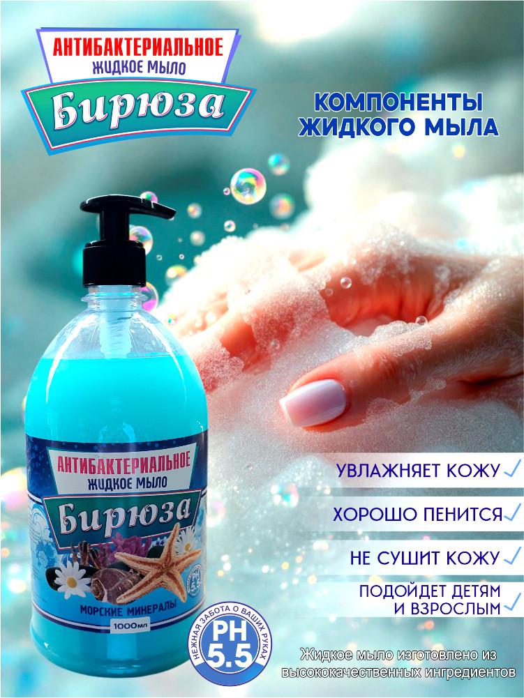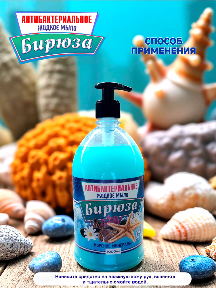 Антибактериальное жидкое мыло "Бирюза" Морские минералы, 1000 мл, производство Таджикистан