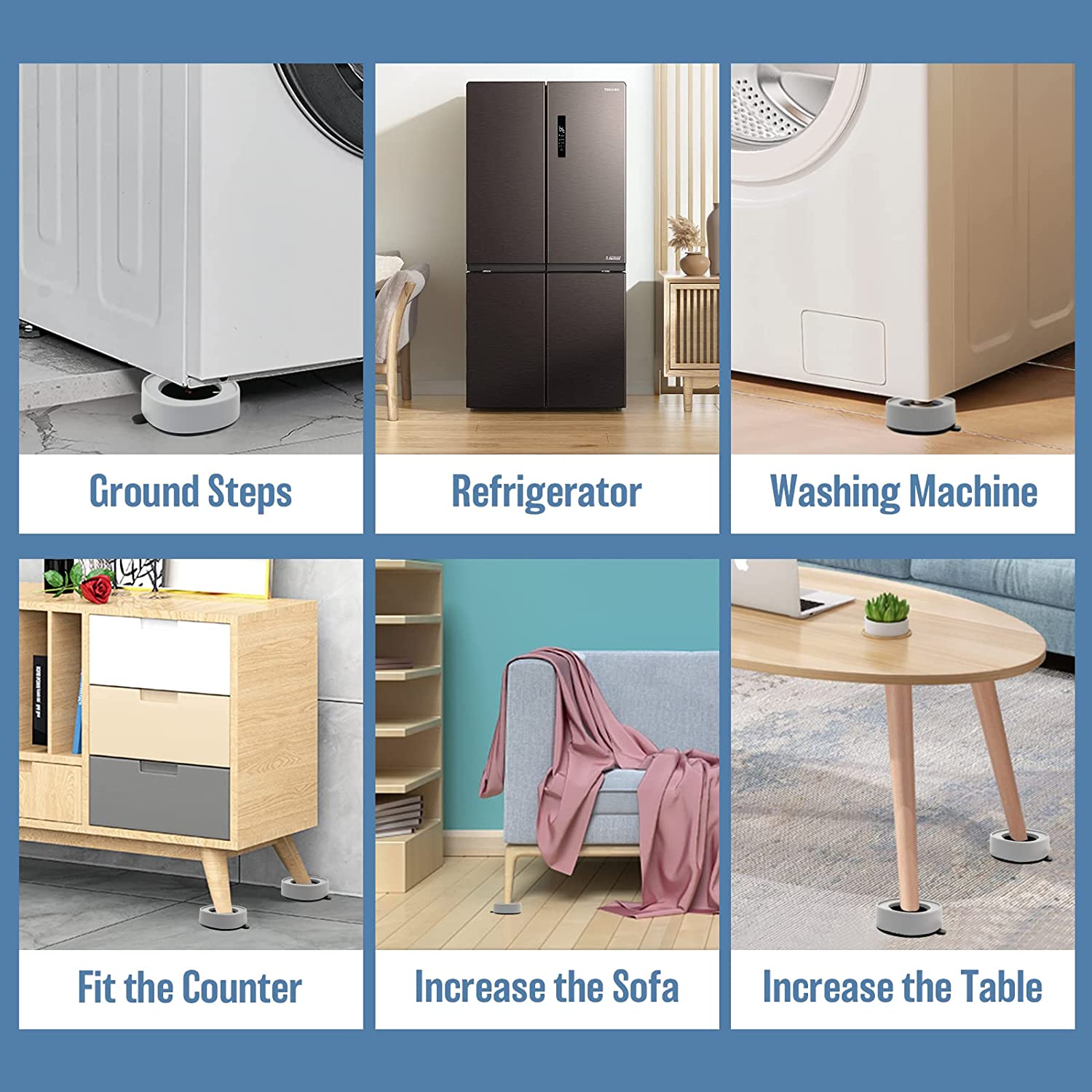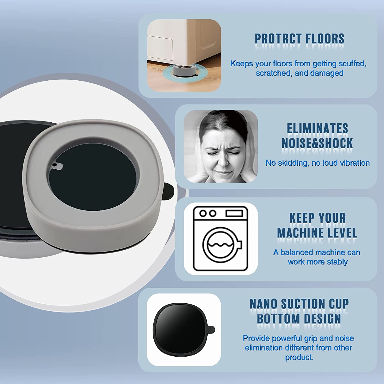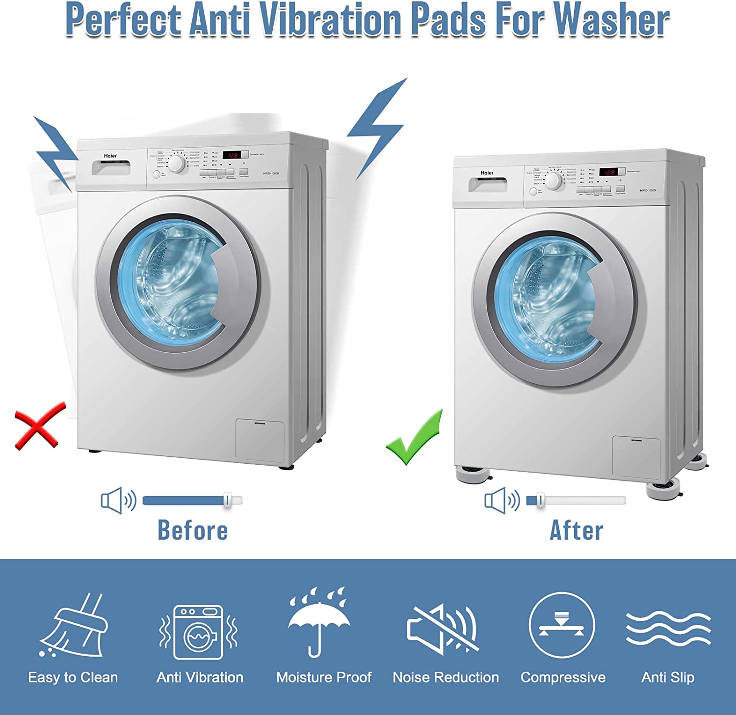 Эффективность. Конструкция на присосках, которая предотвращает вибрацию стиральных и сушильных машин любого типа на любом полу, так же эффективно защищая от царапин поверхность пола, включая паркет, ламинат и плитку. Удобство. Ваша машинка будет поднята на несколько сантиметров для эффективного предотвращения попадания влаги и лучшей очистки под ней. Универсальность. Вы можете использовать эти прокладки где угодно вашего дома, сделанные из высококачественных материалов. Хорошая опорная способность, износостойкость, влагостойкость, коррозионная стойкость. Легкая установка. Просто поднимите каждый угол машины и вставьте шумопоглощающие подушки, подходящие для всех стиральных и сушильных машин с четырьмя ножками. Антивибрационные подставки для стиральной машины. Стирка станет спокойным и приятным занятием, больше никаких шумов от вашей стиральной машины.