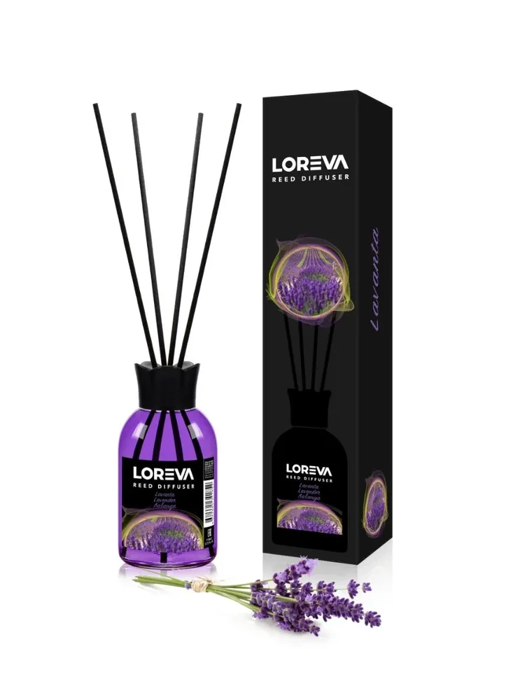 Аромадиффузор Loreva Reed Diffuser с ароматом лаванды — это воплощение гармонии и уюта в вашем доме. Глубокий и расслабляющий лавандовый аромат, заключённый в элегантный флакон с насыщенным фиолетовым оттенком, наполняет пространство нежными, умиротворяющими нотами природы.
