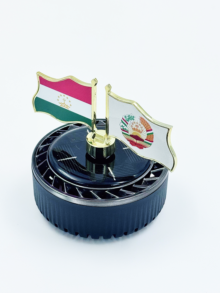 Эффектный автомобильный ароматизатор с двумя флажками Таджикистана — стильное и патриотичное украшение салона. Оснащён встроенной солнечной батареей, благодаря которой флажки плавно вращаются под воздействием света, создавая эффект движения и привлекая внимание.