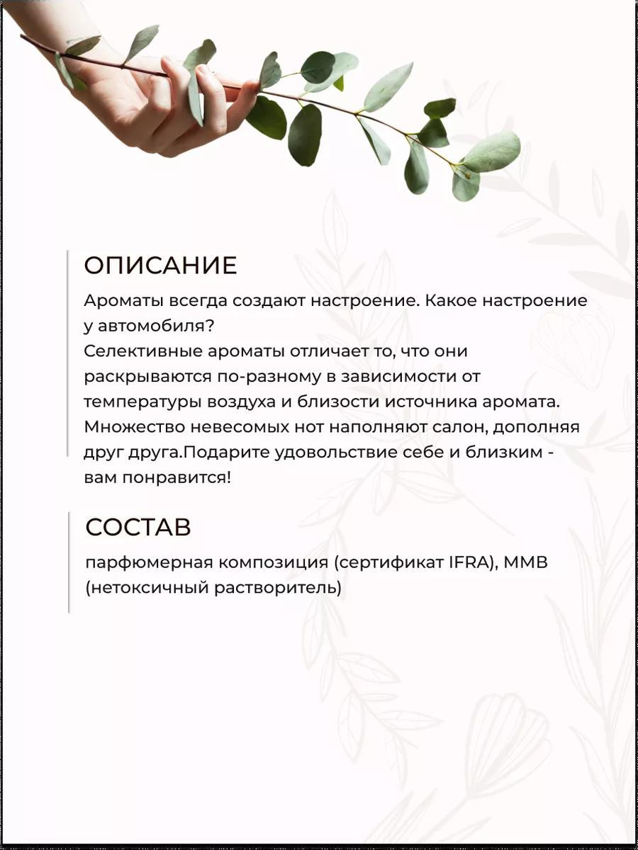 Автодиффузор "Whisper" Ветра" табак, ваниль, пряности, 7 мл Ароматы всегда создают настроение. Какое настроение у автомобиля? Селективные ароматы отличает то, что они раскрываются по-разному в зависимости от температуры воздуха и близости источника аромата. Множество невесомых нот наполняют салон, дополняя друг друга. Подарите удовольствие себе и близким - вам понравится! Состав/INCI: парфюмерная композиция (сертификат IFRA), ММВ (нетоксичный растворитель)