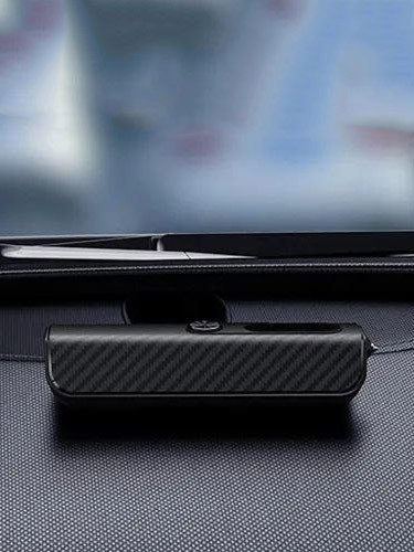 Материал корпуса — прочный пластик с покрытием под карбон или дерево. Надёжно фиксируется и легко настраивается.