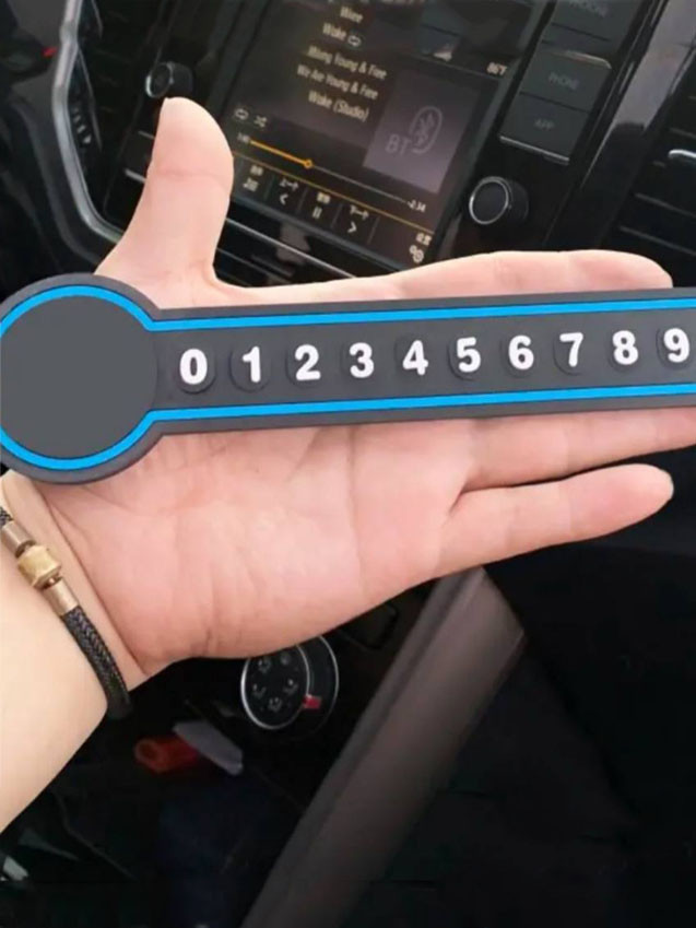 Удобная и практичная автомобильная визитка с резиновым покрытием. Позволяет оставить свой контактный номер телефона на приборной панели автомобиля, чтобы другие водители могли связаться с вами при необходимости.
