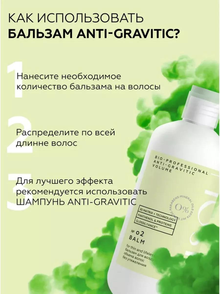 Тающий бальзам для волос ANTI-GRAVITIC VOLUME моментально впитывается в волосы. Добавляет волосам густоту и объем. Бальзам делает волосы мягкими и послушными, обеспечивает блеск и легкое расчесывание. Формула без утяжеления. 3D-MATRIX + обволакивает волосы и постепенно образует активные вещества, которые повышают толщину волокон волоса. Пантенол борется с глубоким обезвоживанием волос, усиливает их рост, укрепляет корни и придает воздушный прикорневой объем волосам. Glossilyance - актив мгновенного роскошного блеска волос. Мягкий флакон позволит использовать средство до последней капли.BIO-PROFESSIONAL это коллаборация науки и природы. Польза для волос. Максимальная безопасность для человека. Ингредиенты с доказанной эффективностью. Без парабенов, без минеральных масел, без агрессивных сульфатов, SLS и SLES. 100% профессиональные активы и работающие формулы.
