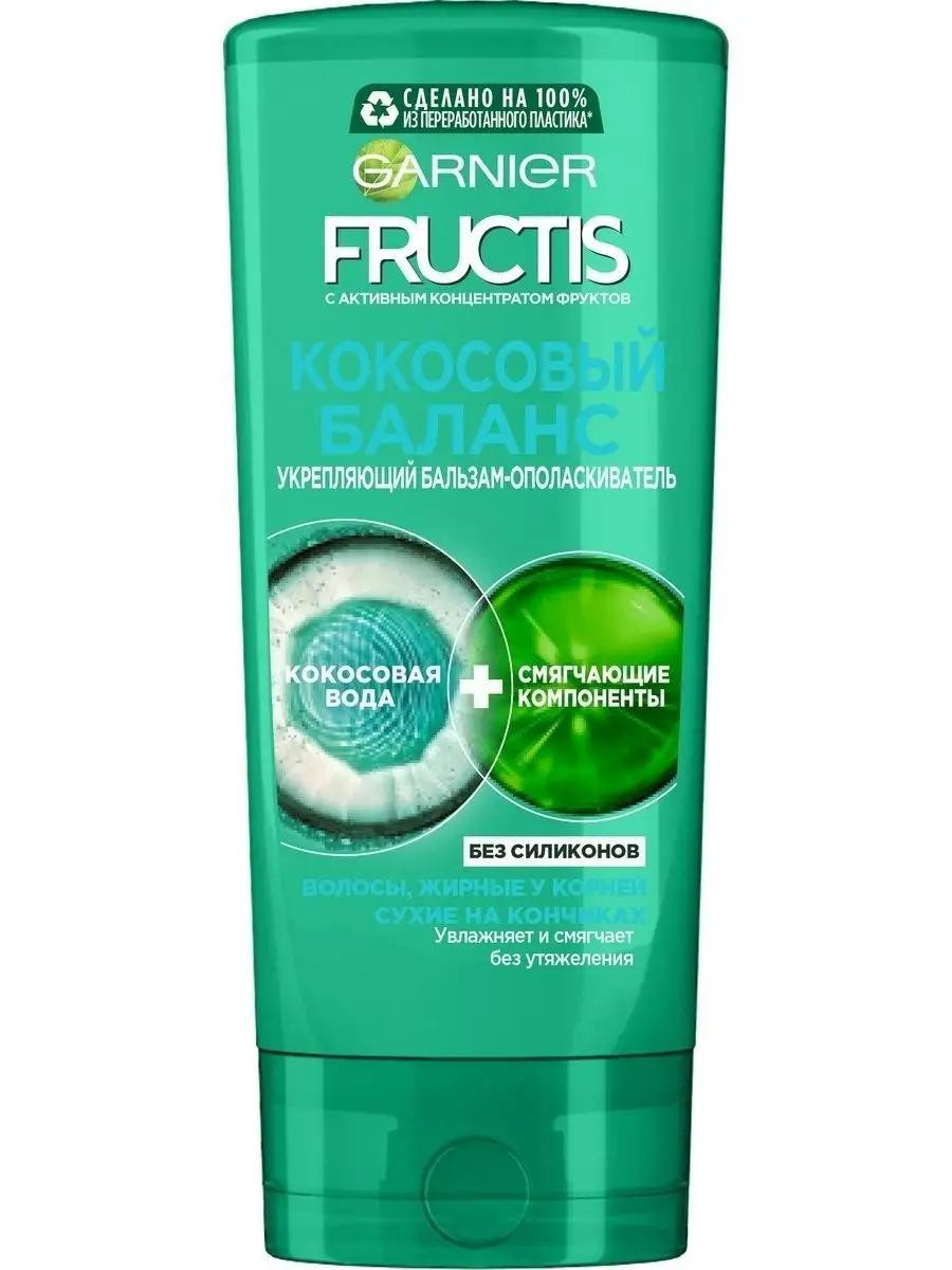 Жирные у корней, сухие на кончиках? Fructis (Фруктис) от Garnier (Гарньер) представляет смягчающую систему, которая совмещает в себе суперфрукт натурального происхождения с активными ингредиентами. Ваши волосы выглядят более здоровыми и сильными. Бальзам-Ополаскиватель Кокосовый Баланс обогащен суперингредиентами: Формула с Кокосовой водой и Смягчающими ингредиентами увлажняет волосы по всей длине без утяжеления, а также облегчает расчесывание и придает мягкость. Доказано! Волосы выглядят более здоровыми, мягкими и легче расчесываются.