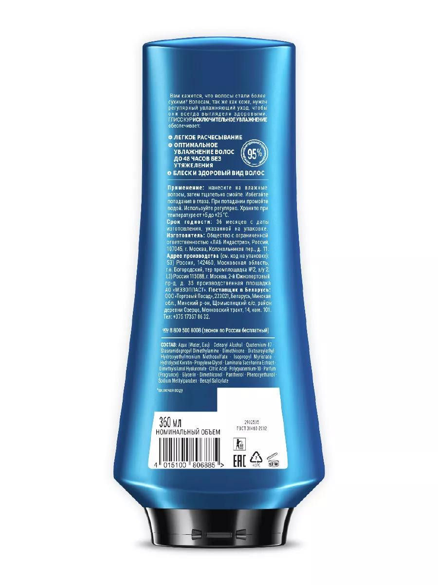 Бальзам Глисс Кур Исключительное увлажнение — это идеальный выбор для ухода за нормальными и склонными к сухости волосами. Этот продукт обеспечивает интенсивное увлажнение, легкость расчесывания и придает волосам здоровый блеск.