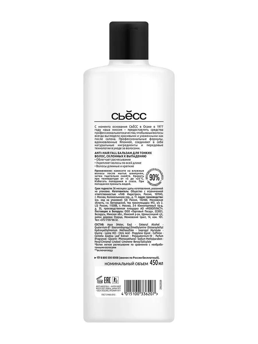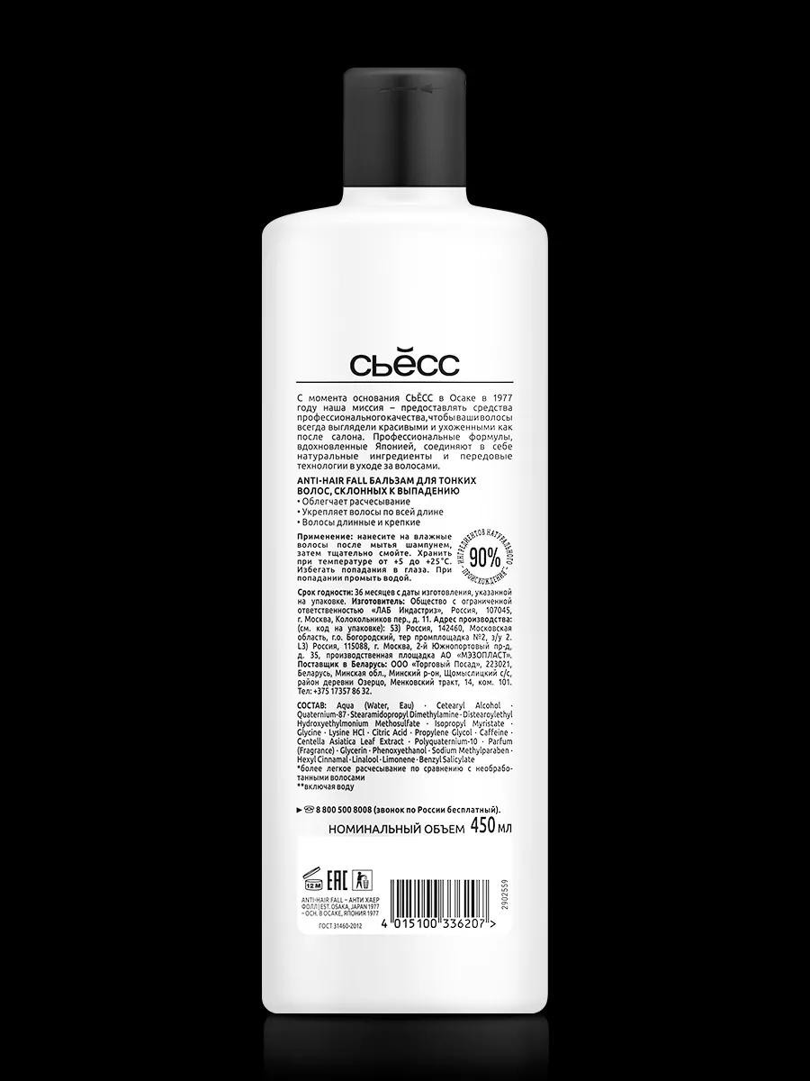 Профессиональный бальзам - ополаскиватель Сьесс Anti-Hair Fall — это эффективное средство для бережного ухода за волосами, которое помогает укрепить их по всей длине и облегчить расчёсывание.