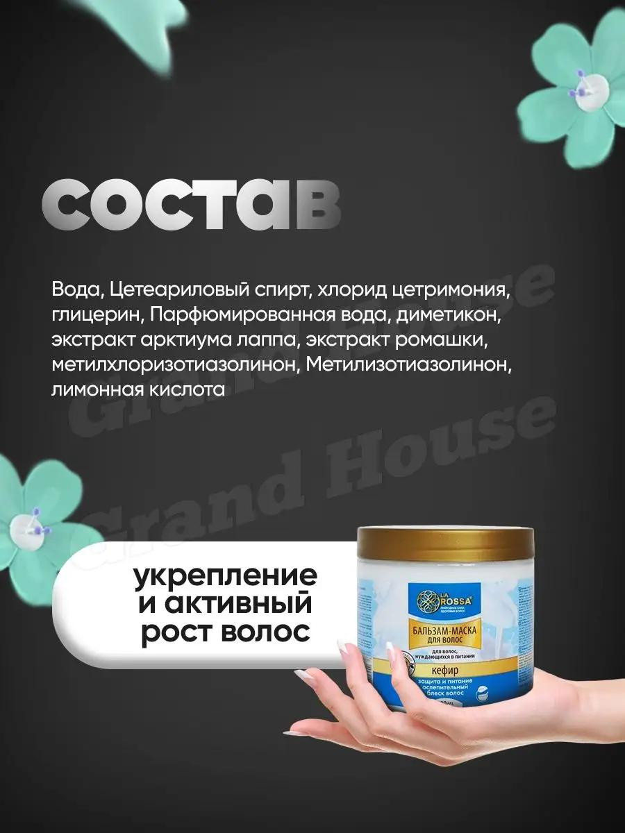 Бальзам-маска для волос La Rossa без силиконов и парабенов улучшает состояние и внешний вид волос. Входящие в состав натуральные компоненты питают, увлажняют и разглаживают волосы, делают их более мягкими, блестящими и упругими, облегчают расчесывание. В зависимости от рекомендаций на упаковке нанесение маски проводится или только на длину, или и на корни волос тоже. Такое уходовое средство по истечении указанного производителем времени смывается теплой водой. Профессиональная серия бальзамов и бальзамов-масок для волос La Rossa подходит как для женщин, так и для мужчин. В ней каждый найдет то, что ему нужно. А еще любое из этих средств подарит вашим волосам чудесный благородный аромат! Объем – 500 мл. «Кефир» предназначен для волос, нуждающихся в питании. О пользе кефира для волос знали еще наши бабушки. Компоненты питают волосяные фолликулы и кожу головы, укрепляя волосы и ускоряя их рост. Волосы получают защиту и ослепительный блеск. Подходит для сухих волос. Профессиональные средства La Rossa – отличное решение для здоровья и прекрасного внешнего вида ваших волос. Какой бы вариант вы ни выбрали – результат его применения всегда будет соответствовать ожиданиям. Средства для волос бренда La Rossa можно применять комплексно: в нашем магазине к каждому бальзаму вы найдете пару в серии шампуней.
