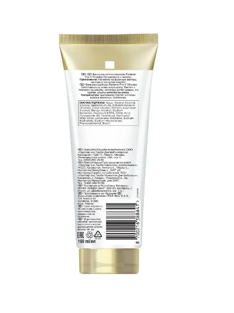 Pantene, Бальзам-ополаскиватель Hydra Miracles Увлажнение и сияние, 160мл, 1 шт. У вас сухие, поврежденные волосы, которые нуждаются в увлажнении? Бальзам-ополаскиватель Увлажнение и сияние от Pantene Pro-V Miracles — это уникальное увлажняющее средство для волос. Его формула, обогащенная комплексом Pro-V, глубоко увлажняет склонные к сухости, тусклые волосы, придавая им исключительную мягкость и здоровый блеск. Бальзам-ополаскиватель с гиалуроновой кислотой и биотином ежедневно ухаживает за волосами, обеспечивая им необходимое питание, чтобы они выглядели здоровыми, полными жизни и энергии.