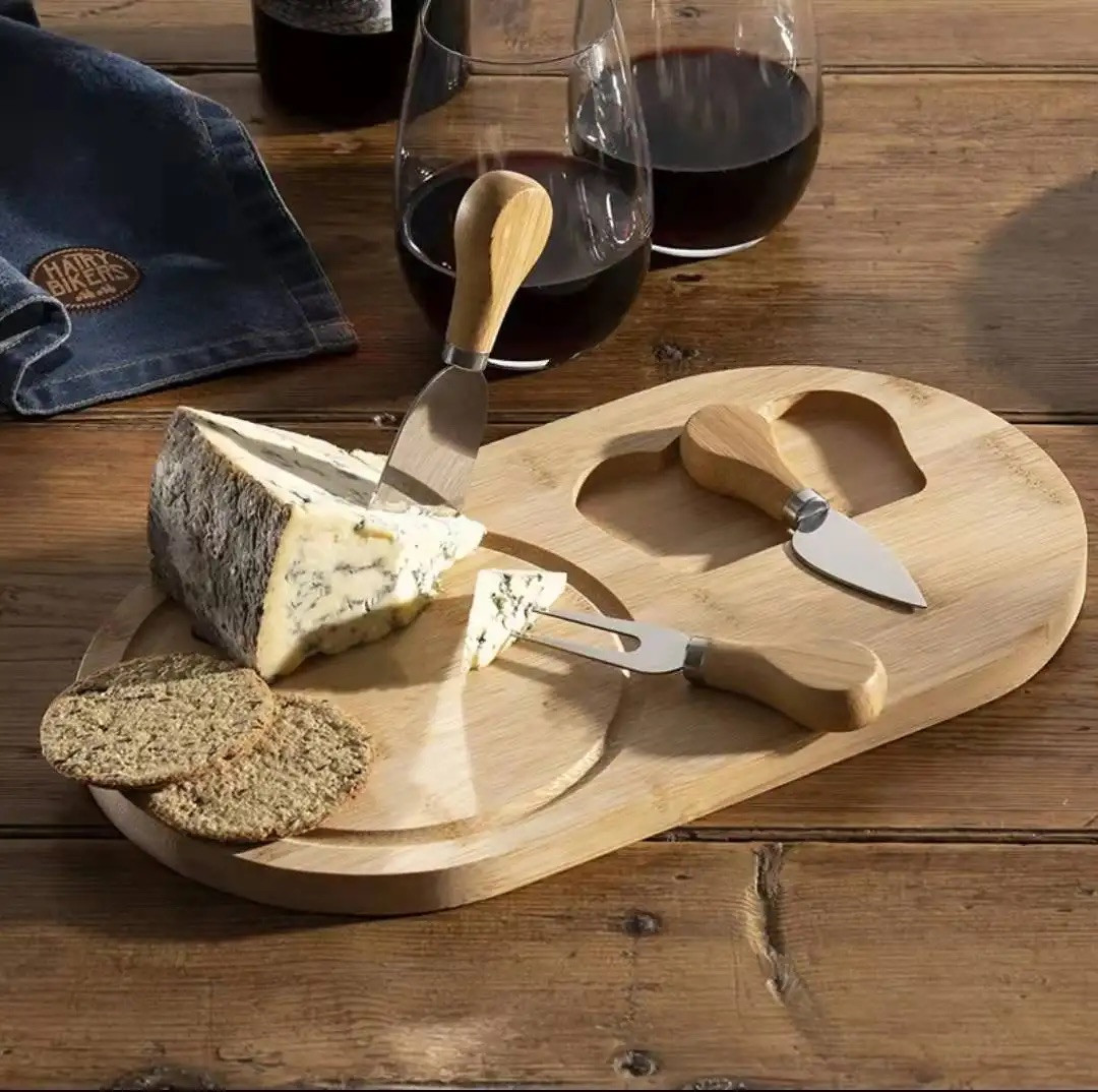 Бамбуковая доска с набором ножей – это идеальный аксессуар для подачи сыра, который объединяет функциональность и стиль. Изготовленная из высококачественного бамбука, она экологична и долговечна, что делает её отличным выбором для вашего дома.