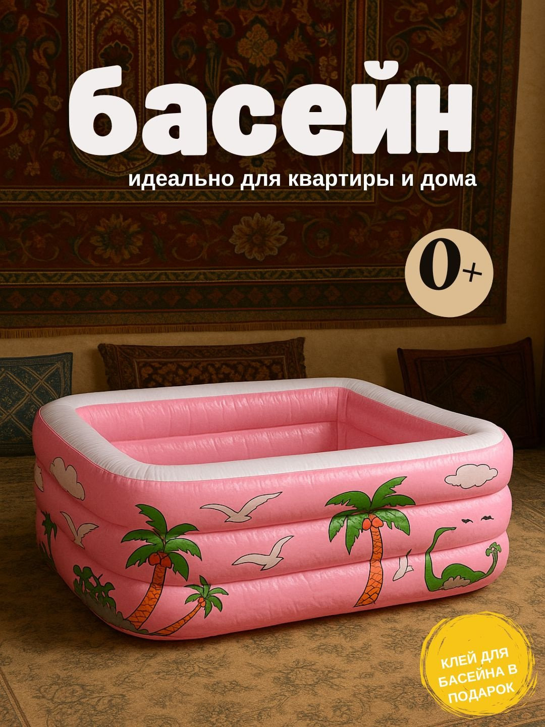 Бассейн детский для квартиры и двора 110х85х32 см, для детей до 12 лет, клей в подарок