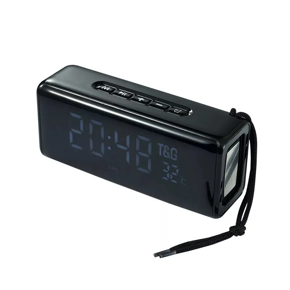 Портативная колонка T&G TG-174 - это отличная бюджетная переносная колонка с качественным и громким звуком, она создана для тех, кто не мыслит отдыха без любимой музыки. Портативная колонка T&G TG-174 отлично подойдет для любителей походов, отдыха на природе или даче, она поможет создать атмосферу праздника, где угодно.Колонку удобно брать с собой, она имеет небольшой вес и поместится в любом рюкзаке, а также она имеет защиту от влаги и не боится мороси и дождя. Колонка подключается к любым устройствам по средствам Bluetooth.Портативная колонка T&G TG-174 рассчитана на несколько часов автономной работы без подзарядки и позволит наслаждаться любимыми треками в отличном качестве долго и в любых обстоятельствах. Колонка оснащена встроенным будильником с большим циферблатом и станет отличным дополнением интерьера.Характеристики:Тип механизма: кварцевый / электронныйИндикация времени: электронная/цифроваяРадио: даМатериал корпуса: пластикРабочее расстояние: 10 мБатарея: 3.7 В 1200 мАчВремя проигрывания: 6 чДиаметр динамика: 57 мм х 2Диапазон частот: 80 Гц - 20 кГцЧувствительность: 90 дБМощность динамика: 5 Вт х 2Питание:5 В/0.5 АРазмер цифр (ВхШ): 30 мм х 0.3 ммРазмер цифр температуры (ВхШ): 17 мм х 0.2 ммРазмеры: 170х45х70 ммВес: 0.47 кгКомплектацияКолонка, зарядный кабель USB - micro USB, руководство пользователя, упаковка