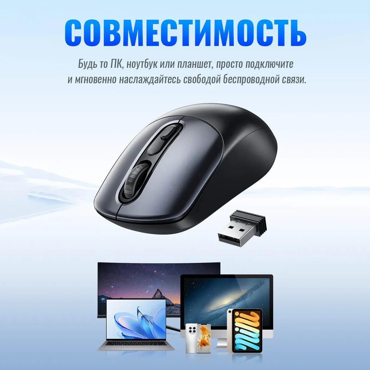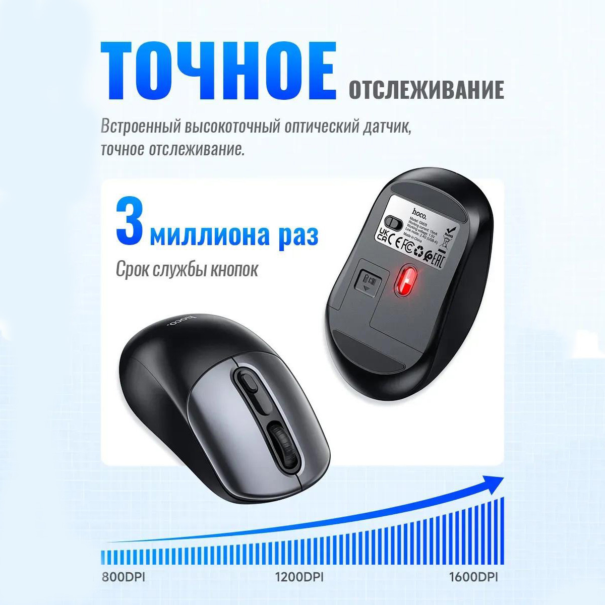 Мышь беспроводная Hoco GM28 Business - это полезный продукт для вашего компьютера. Благодаря возможности подключения USB 2,4 ГГц ваше соединение станет проще и удобнее, чем когда-либо. Сигнал мыши всегда излучается непрерывно и стабильно, с меньшей задержкой, чем соединение Bluetooth. Конструкция беспроводного приемника 2,4 ГГц чрезвычайно компактна, устраняя громоздкость традиционных проводных мышах. Мышь компьютерная Hoco GM28 Business также имеет компактный дизайн, что позволяет удобно держать мышь в руке. Мягкое нажатие клавиш позволяет комфортно использовать мышь в течение длительного времени, не испытывая проблем с усталостью рук, при этом не мешая коллегам или домочадцам Размер с упаковкой 195х135х50мм Вес с упаковкой 97 грамм Размер мыши 108х65х38мм Вес мыши 59 грамм Работает от 1 батарейки (АА) Работает через ресивер WIRELESS. Интерфейс -USB, Радиоканал.