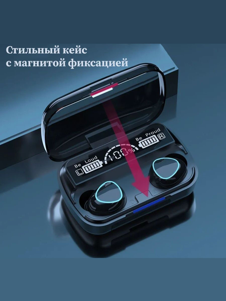 Беспроводные Bluetooth наушники М10 TWS - отличный подарок для любителей музыки и активного образа жизни! Наушники совместимы с Android и iOS, благодаря чему они работают на любом смартфоне, ноутбуке, планшете, имеющем систему беспроводной связи Bluetooth. Мощный аккумулятор кейса с функцией Power Bank выручит вас если телефон неожиданно разрядился и поможет быть всегда на связи! Одного заряда хватает на 120 часов в режиме ожидания, или 3-4 часов разговора и беспрерывного прослушивания музыки. Smart наушники 3 в 1 оснащены электронным дисплеем, который показывает процент заряда наушников и кейса. Беспроводные наушники TWS удобно сидят в ухе и подходят для активного спорта. Наушники имеют качественный звук благодаря технологии HI-FI и объемному 9D звучанию; и чувствительный микрофон с функцией шумоподавления. Наушники TWS автоматически синхронизируются с телефоном и имеют сенсорное управление. Влагостойкость IPX7 защищает наушники при кратковременном попадании в воду.