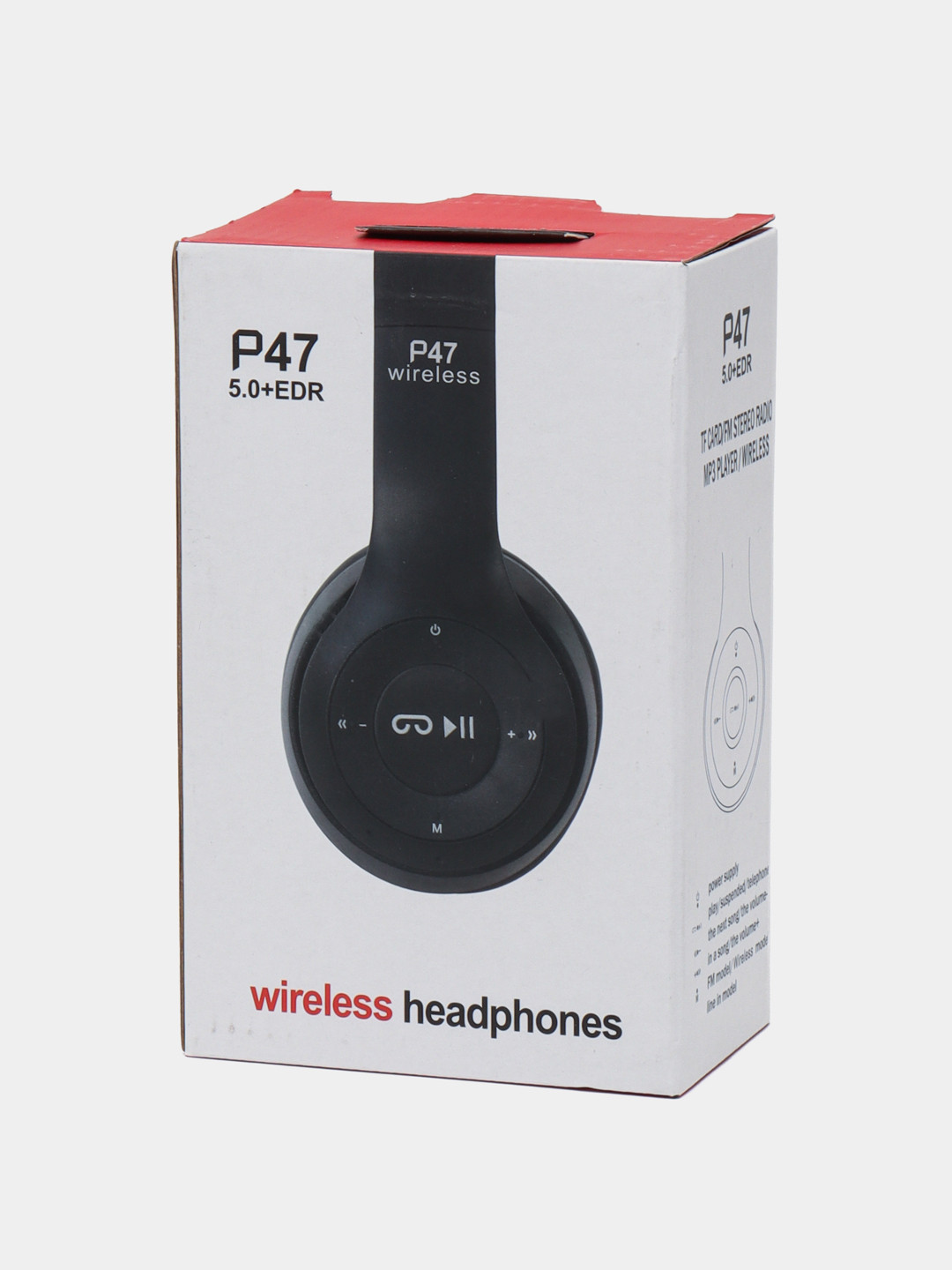 P47 Wireless Headphones – это хорошая модель универсальных беспроводных блютуз наушников с FM приемником. Наушники сочетают в себе отличный мощный звук, супер дизайн, качество, а также удобную эргономику управления.