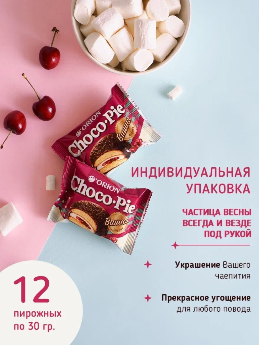 Эти пирожные идеально подходят для любого повода — будь то уютный вечер дома или пикник на природе. Удобная упаковка позволяет легко брать их с собой. Choco Pie станет отличным десертом на праздник или приятным дополнением к чашке чая или кофе. Каждый кусочек дарит незабываемые впечатления благодаря гармонии вкусов и качеству ингредиентов. Порадуйте себя и близких этим удивительным лакомством, которое сочетает в себе сладость и свежесть вишни.