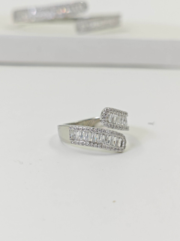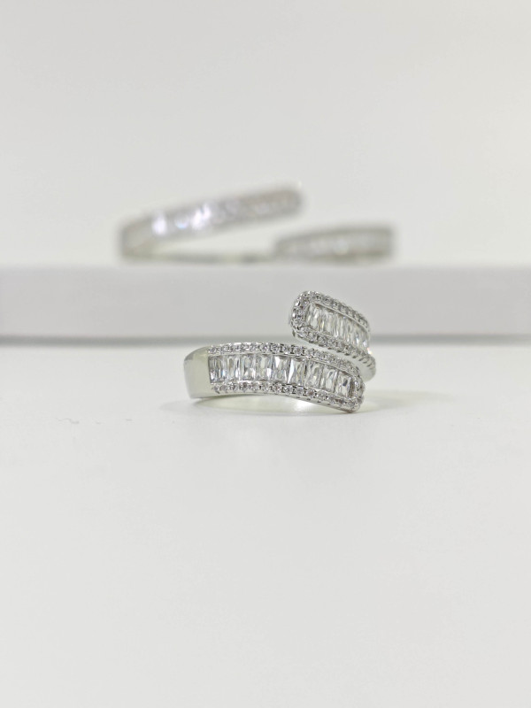 ? Кольцо: Выполнено в аналогичном дизайне, повторяя элегантные линии браслета. Регулируемая форма делает его удобным для любого размера пальца.