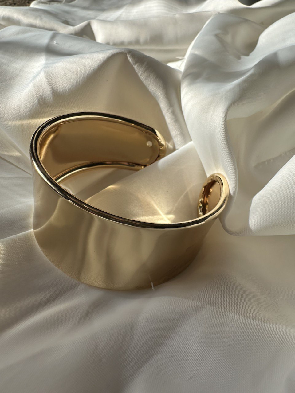 Лаконичный и стильный браслет с зеркальной поверхностью. Выполнен из качественного металла в золотистом цвете, подчеркнет элегантность вашего образа. Подходит для повседневной носки и вечерних мероприятий.