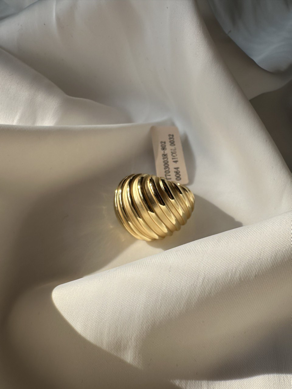 Эффектное кольцо с объемным рельефом, выполненное в золотистом цвете. Дизайн с повторяющимися плавными линиями создает изысканный и современный вид. Это кольцо станет стильным акцентом в вашем образе, подходя как для повседневного ношения, так и для особых случаев.