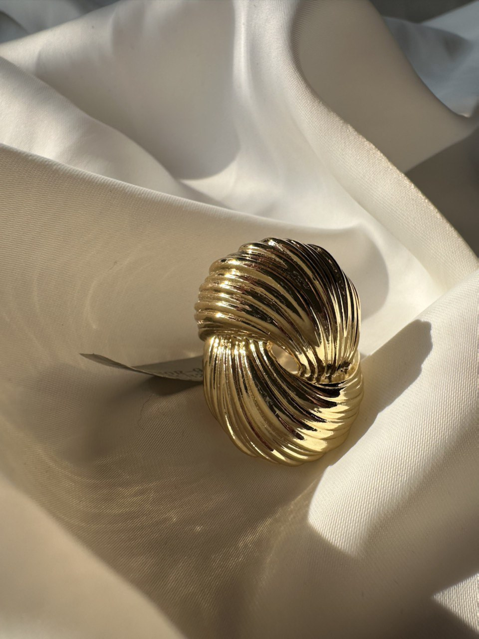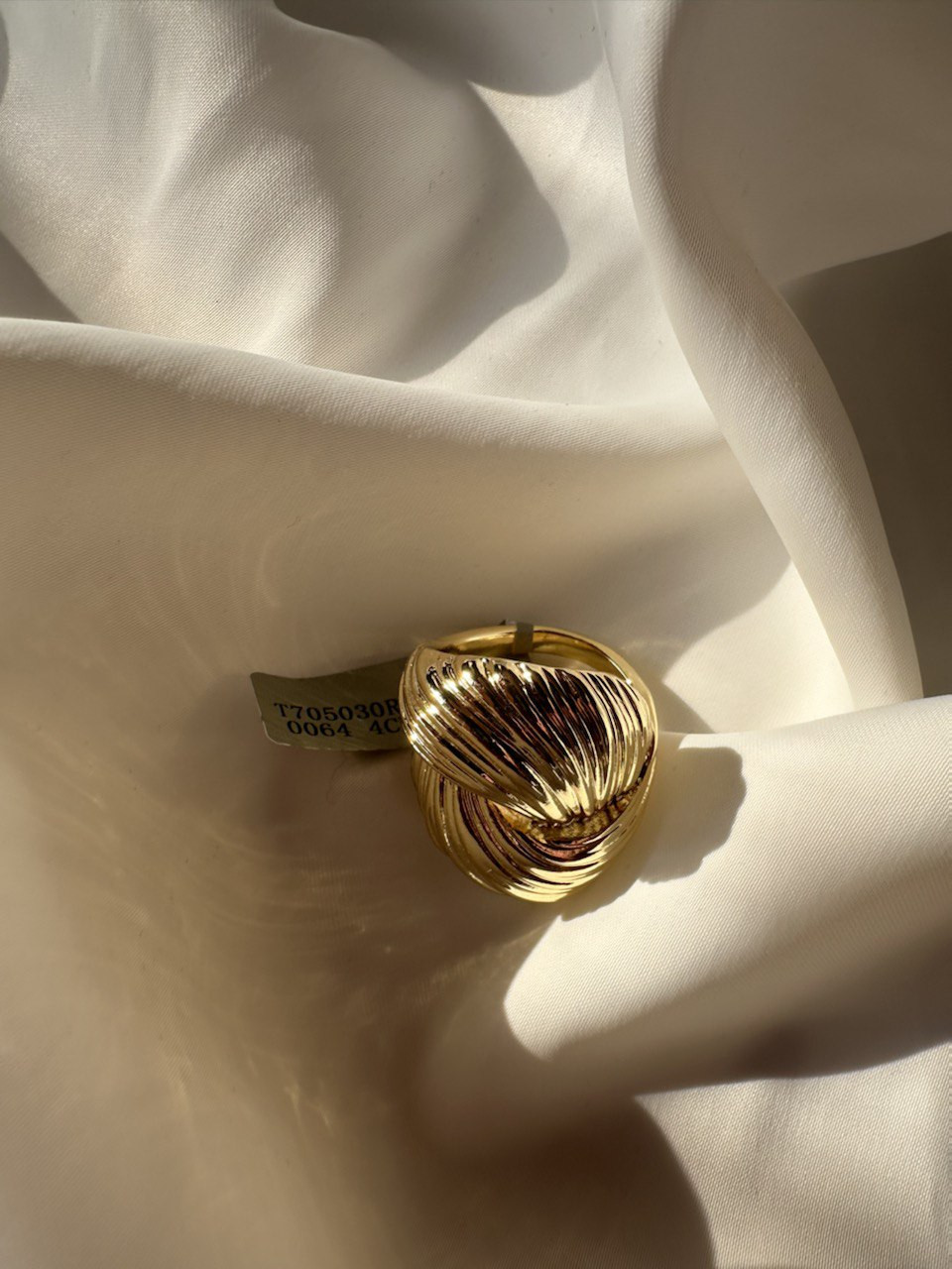 Роскошное кольцо с изысканным объемным дизайном, напоминающим плетение. Полированная поверхность в золотистом цвете создаёт эффект элегантного блеска, добавляя изделию утончённость и выразительность. Кольцо идеально подойдёт для тех, кто ценит оригинальность и стиль в аксессуарах.