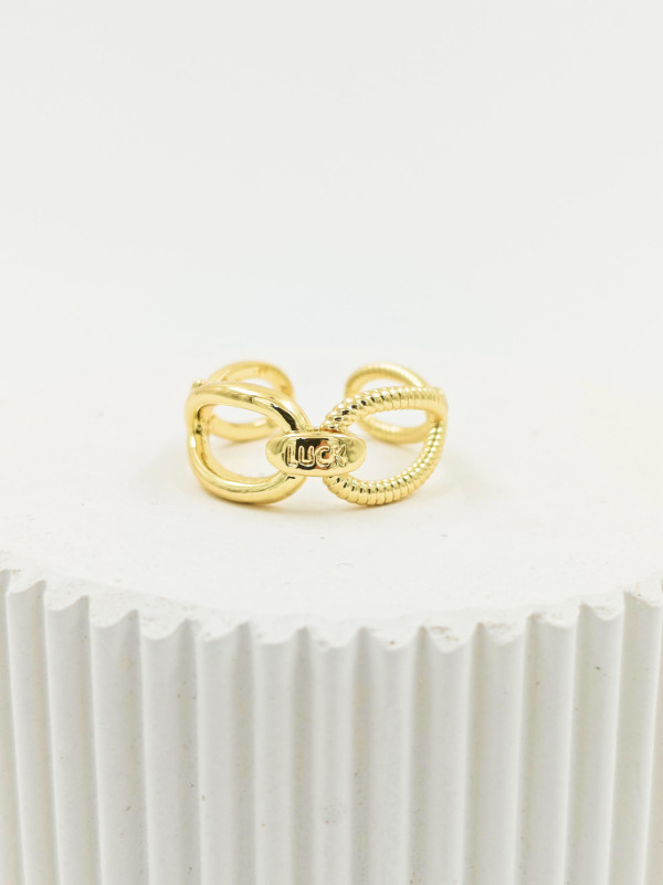 Этот стильный кольцо воплощает гармонию контрастов: изящное сочетание гладкого металлического блеска и фактурных деталей создаёт эффектный и современный дизайн. Оригинальная форма звеньев напоминает цепочку, символизирующую прочность, связь и удачу – именно это слово "LUCK" выгравировано в центре композиции.