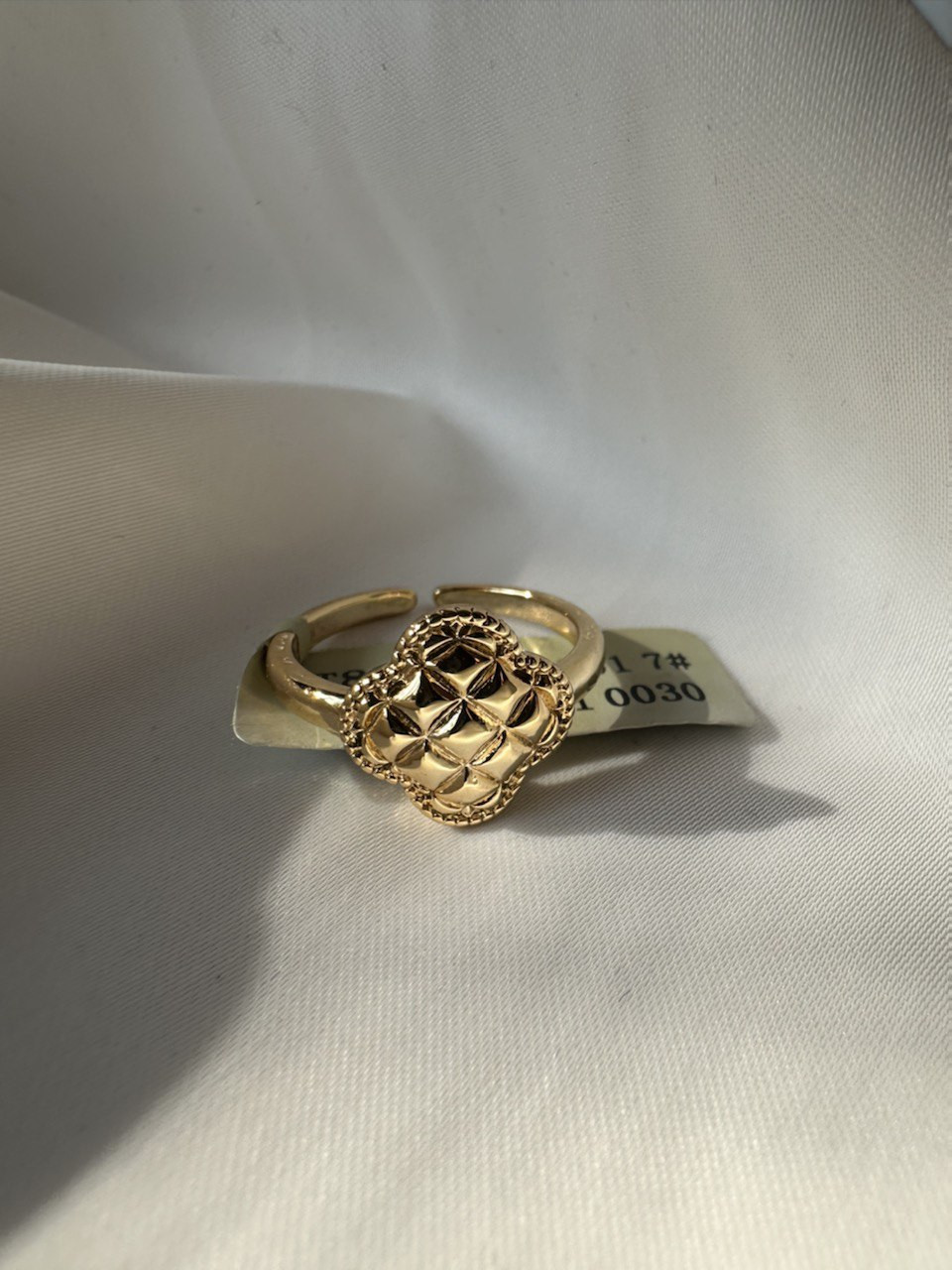 Стильное кольцо с объемным узором в форме квадрата и детальной окантовкой. Выполнено из качественного металла в золотистом цвете, станет ярким акцентом вашего образа.