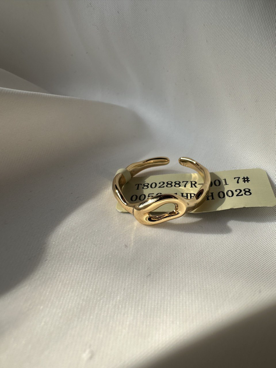 Элегантное кольцо с необычным абстрактным дизайном. Выполнено из металла в золотистом цвете, идеально дополнит любой образ, добавив нотку оригинальности.