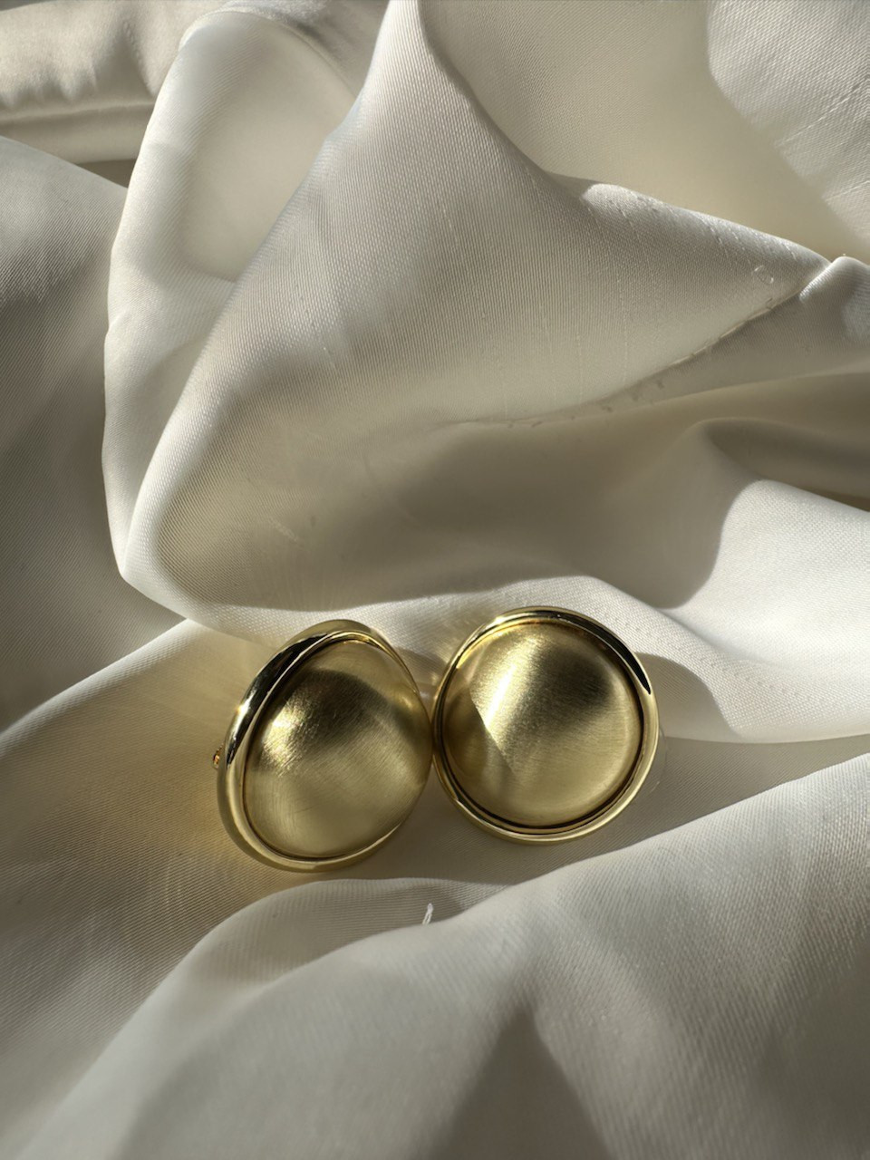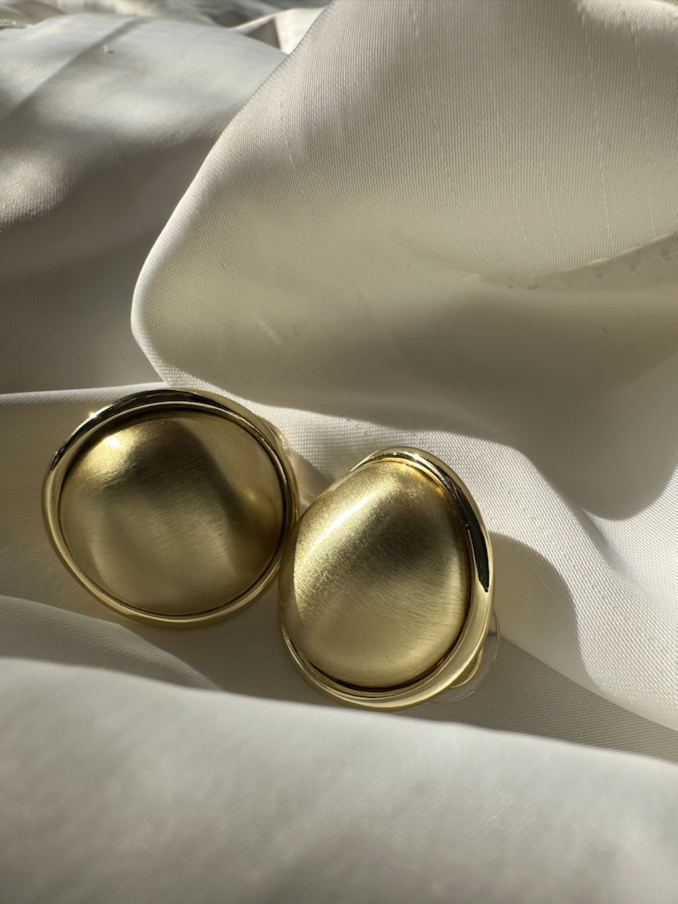 Изысканные серьги круглой формы с матовой поверхностью. Выполнены из металла в золотистом цвете, идеально подойдут для завершения повседневного или вечернего образа.
