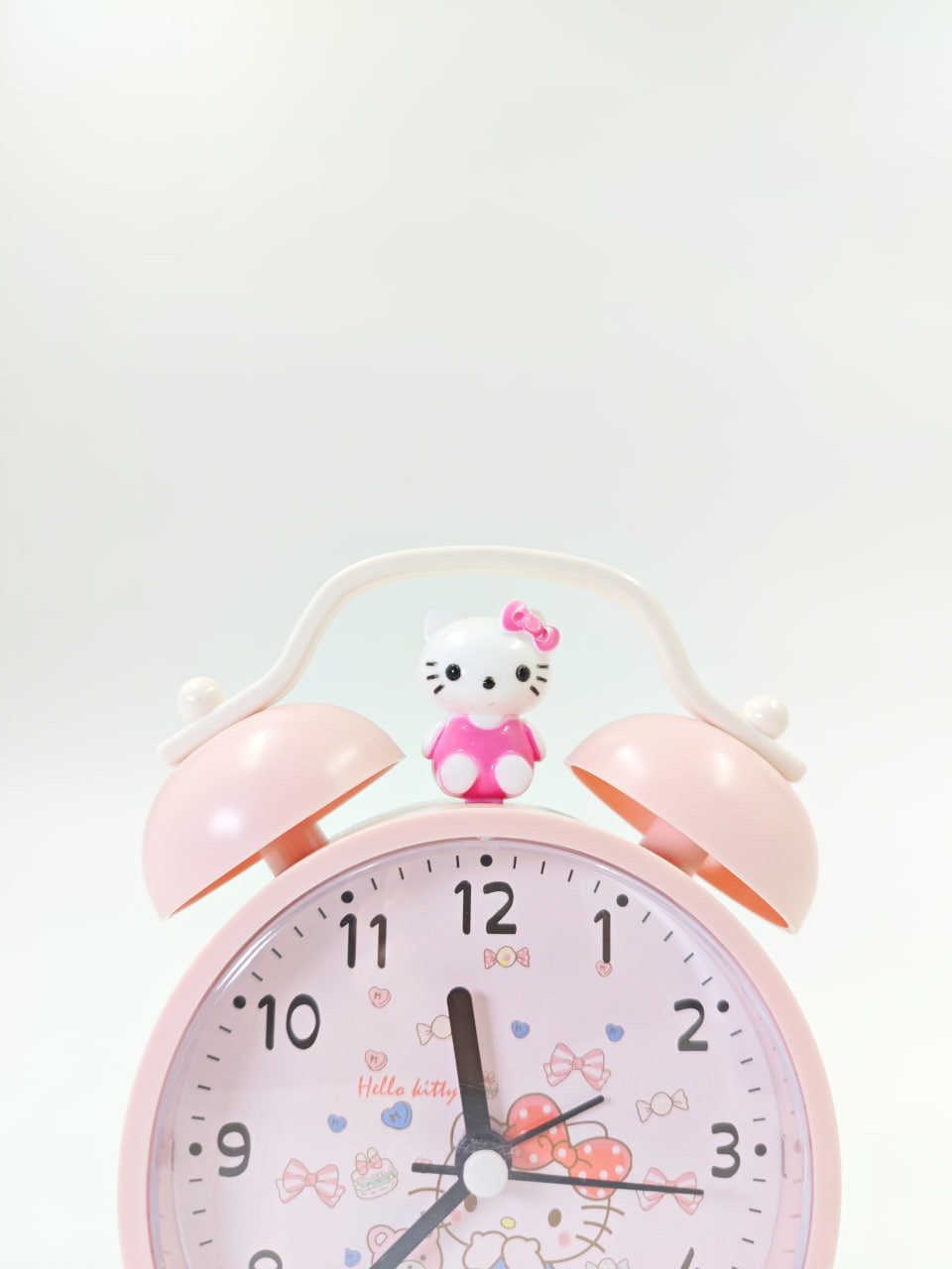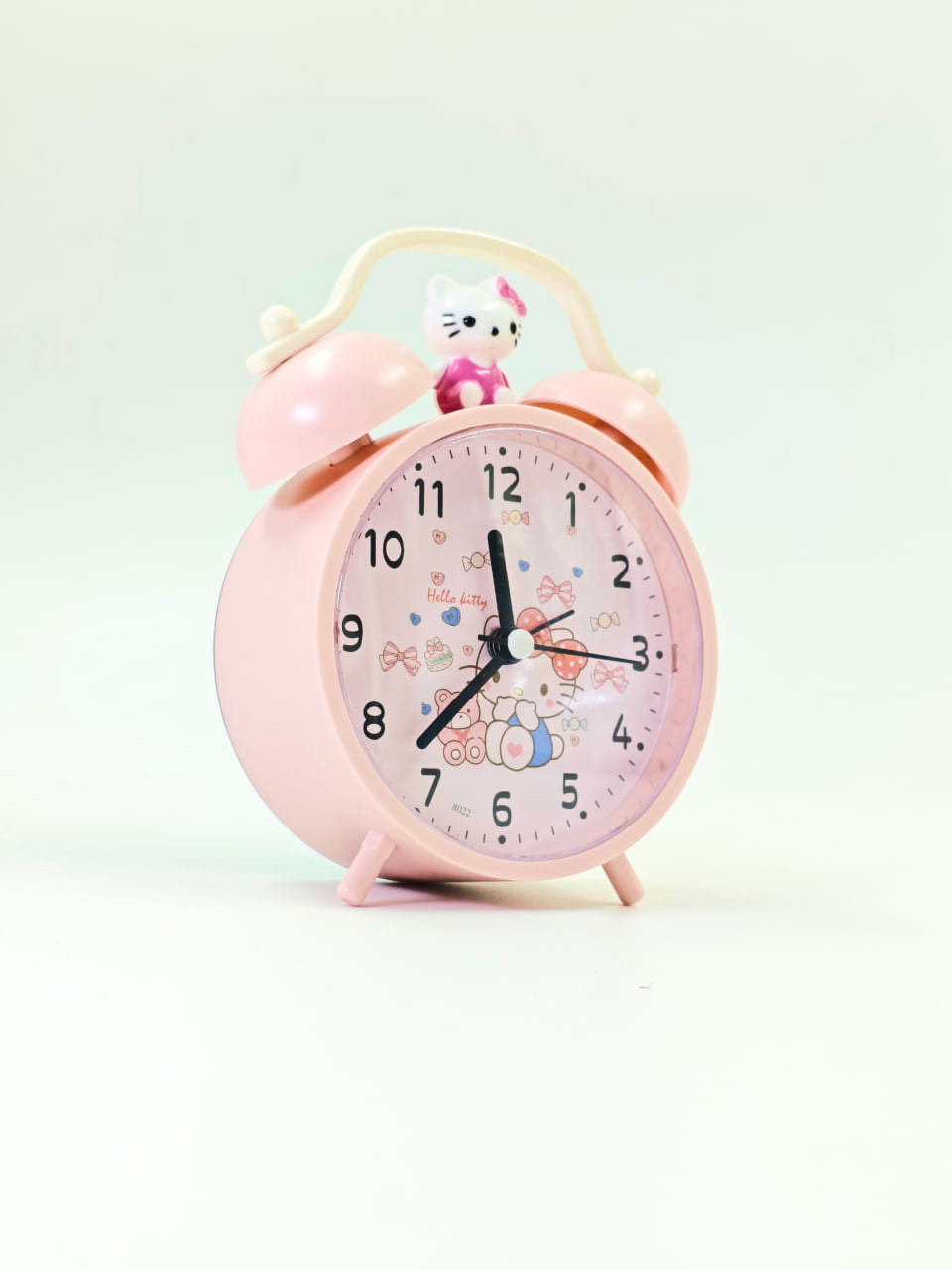 Очаровательный детский будильник в стиле Hello Kitty станет прекрасным украшением комнаты и надежным помощником для пробуждения. Корпус выполнен в нежно-розовом цвете с милыми декоративными элементами. Большой циферблат с четкими арабскими цифрами и стрелками делает время легко читаемым даже для ребенка.