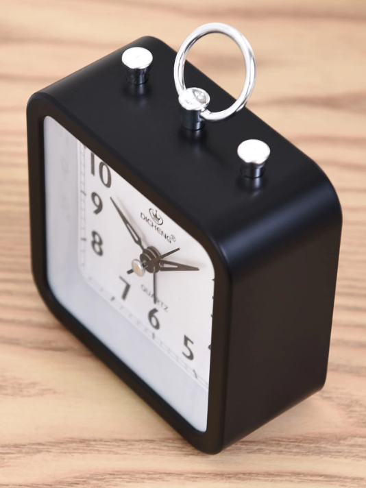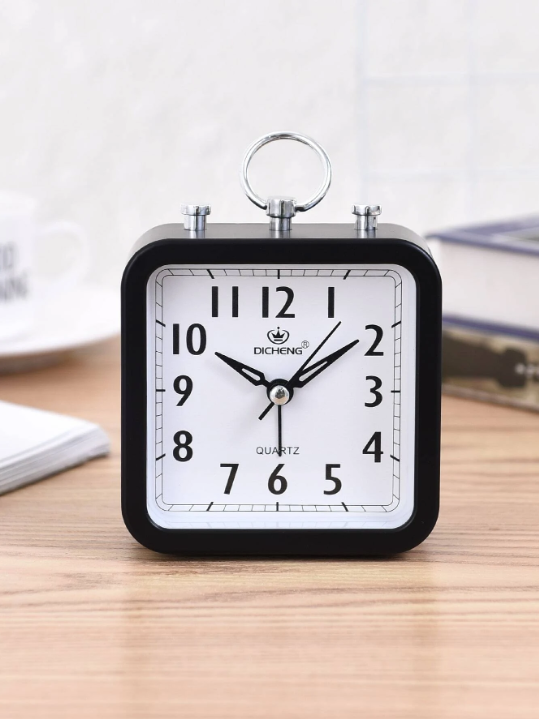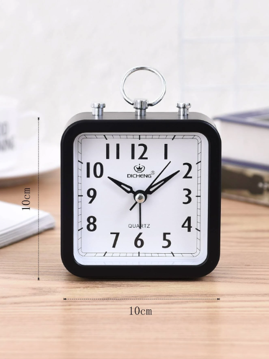 Будильник DICHENG Quartz – стильный и надежный аксессуар для вашего дома или офиса. Компактный квадратный корпус размером 10х10 см выполнен в черном цвете, что придает изделию элегантный и современный вид. Белый циферблат с четкими арабскими цифрами обеспечивает отличную читаемость времени даже при слабом освещении.