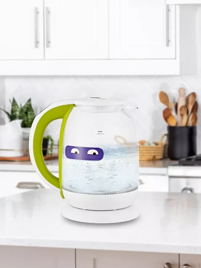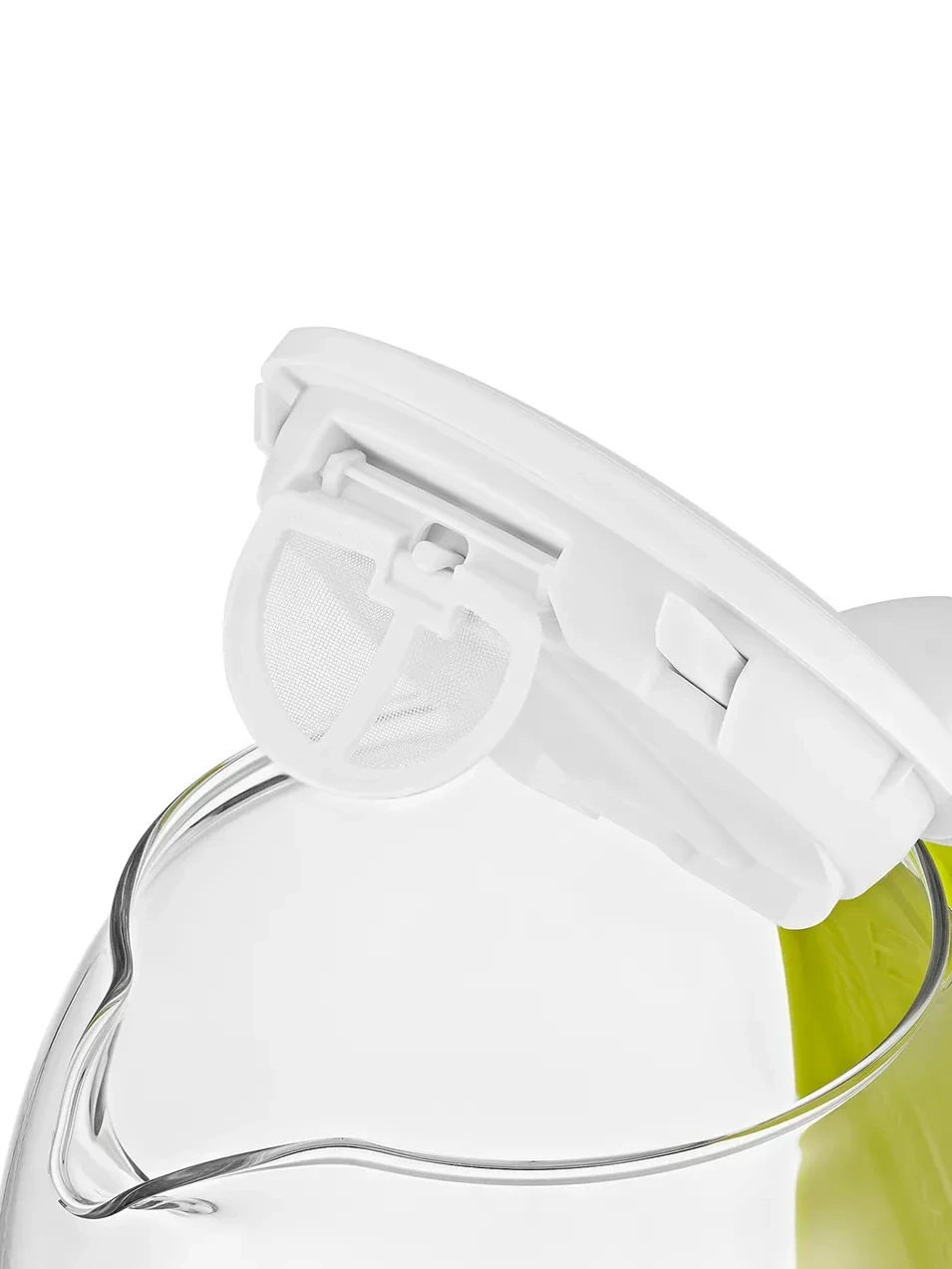 Этот чайник сочетает в себе элегантный дизайн со стеклянным корпусом и удобство современного управления.