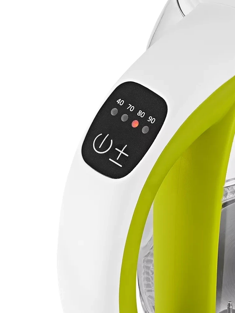 - Регулировка температуры: Возможность выбора температуры нагрева воды: 40°, 70°, 80°, 90° и 100°C (кипячение), что идеально подходит для различных видов чая и других напитков.