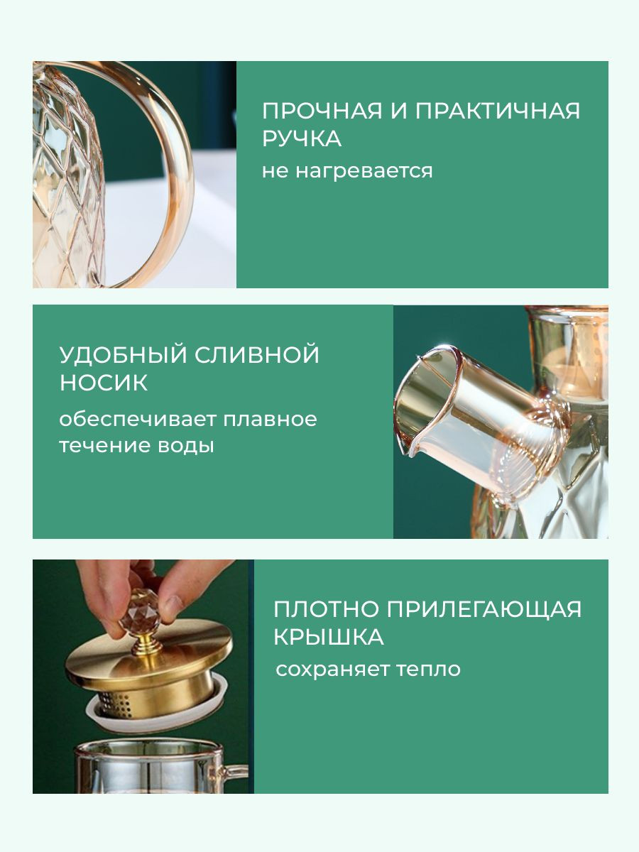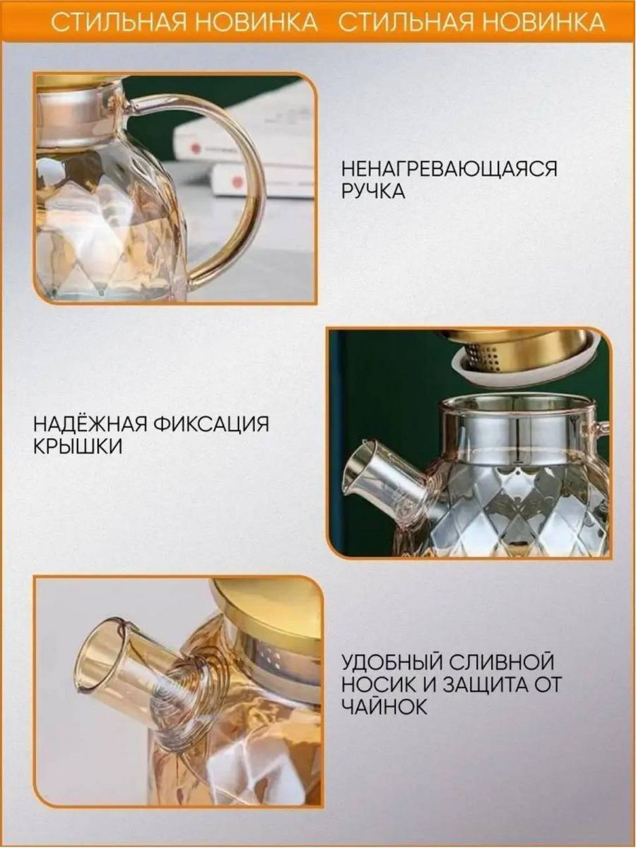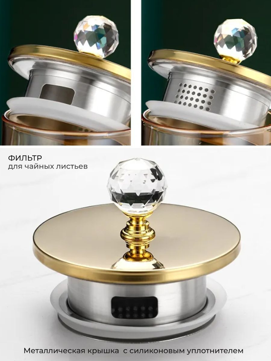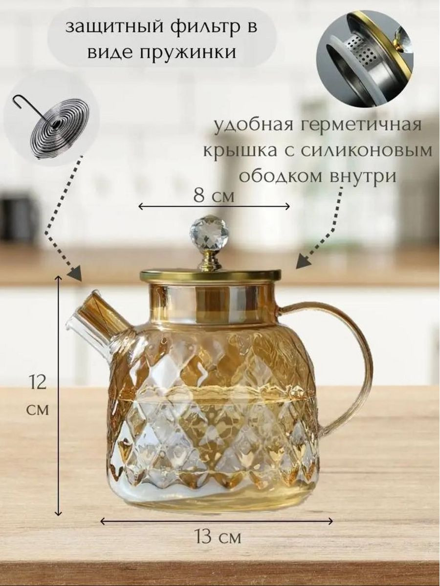 Чайник заварочный 1,5 литра - это прекрасное решение для заваривания свежего и ароматного чая для большой семьи или компании. Изготовленный из прочного боросиликатного стекла, этот чайник заварочный стеклянный прекрасно впишется в любой интерьер вашей кухни. Этот заварочный чайник оснащен надежным фильтром в виде ситечка пружинки, который удерживает мелкие листочки чая или травы, чтобы ваш напиток получился чистым и без нежелательных осадков. С помощью заварника стеклянного вы сможете быстро и удобно приготовить чашку ароматного чая без лишних усилий. Большой объем чайника вместимостью в 1.5 литра позволит вам приготовить достаточно чая для всей семьи или гостей. Наслаждайтесь чашкой чая в приятной компании, заботясь о комфорте и удобстве каждого. Большая вместимость позволит вам наслаждаться чашками чая на протяжении всего дня. Чистка после заваривания чая - не проблема, благодаря простому уходу за этим чайником из стекла. Он легко моется и не требует особого ухода. Просто промойте его под теплой водой или в посудомочной машине. Заварной чайник имеет отличный дизайн, который не только привлекает внимание, но и обладает функциональностью. Непроливаемый носик с антикапельной системой позволит вам наливать чай с большой точностью и без риска попадания напитка на стол. Это очень удобно и позволит вам наслаждаться своими любимыми чашками чая, не задумываясь о возможных неприятностях. Чайник заварной стеклянный с ситечком - это идеальное решение для тех, кто ценит комфорт, функциональность и красивый дизайн.