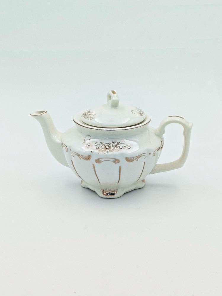 Элегантный фарфоровый сервиз с тонким золотым узором и нежными сверкающими элементами – это идеальный выбор для красивого чаепития в кругу семьи и друзей. Плавные линии, изысканный орнамент и мягкий блеск декоративных вставок подчёркивают благородный стиль и утончённость комплекта.