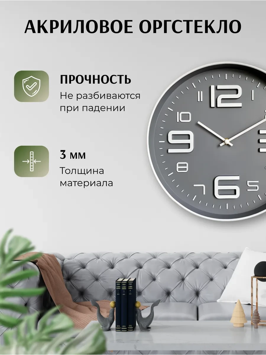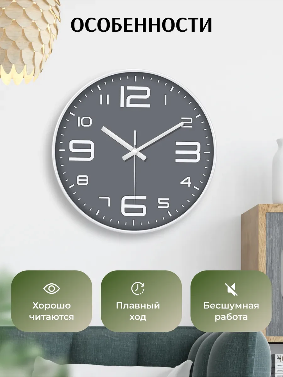 Эти интерьерные часы идеально подойдут для декора стен в вашем доме. Их круглое оформление с четкими цифрами делает их максимально стильными. Бесшумные часики гарантируют спокойствие в любой комнате, будь то кухня либо гостиная.