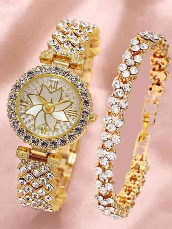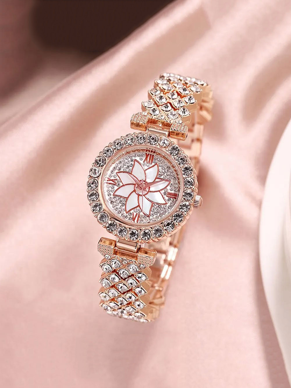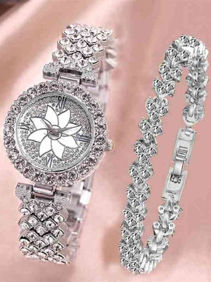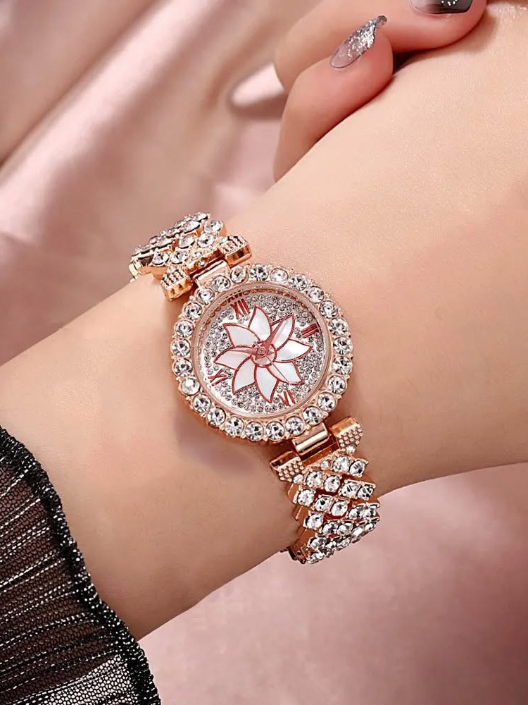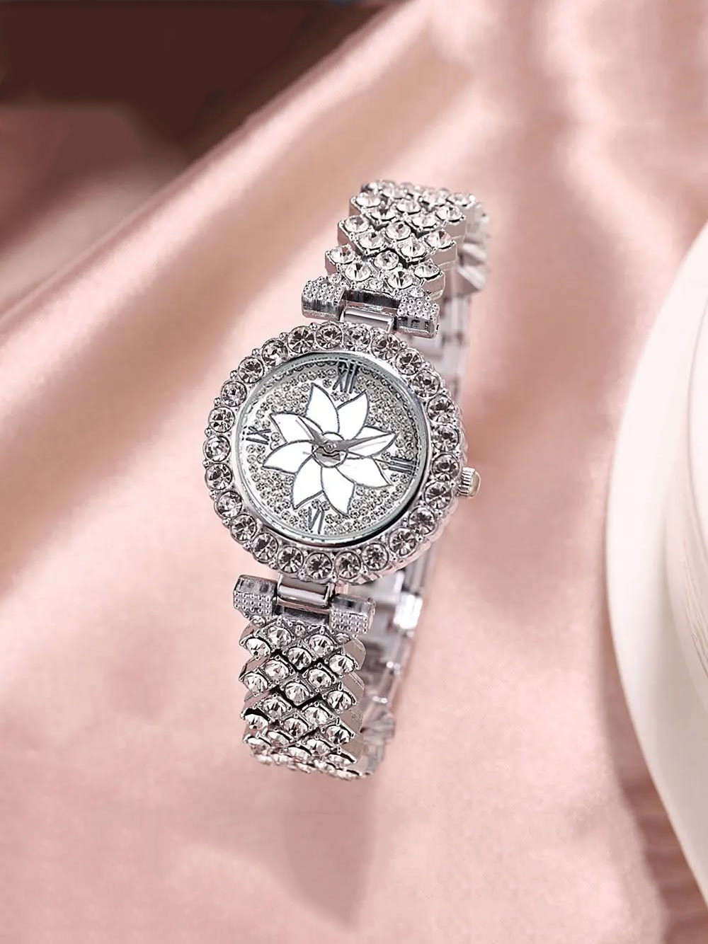 Элегантные женские часы с декоративным циферблатом в виде цветка и инкрустацией блестящими стразами станут изысканным дополнением к любому образу. В комплекте — браслет в тон часов. Идеально подойдут как для повседневной носки, так и для особых случаев.