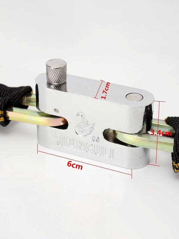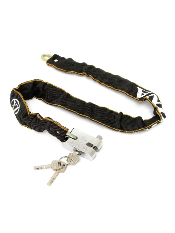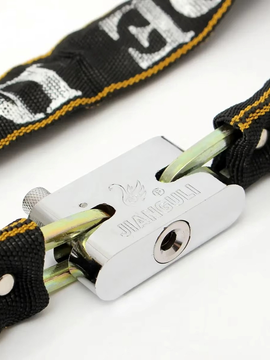 Цепной замок KKYJIA— это простой и эффективный способ защитить ваше имущество. Металлическая цепь покрыта прочной тканевой оболочкой, которая защищает поверхность от повреждений. Замок надёжно фиксирует цепь, а в комплект входят три ключа. Оптимальная длина в 1 метр позволяет легко закрепить транспорт к неподвижным объектам.