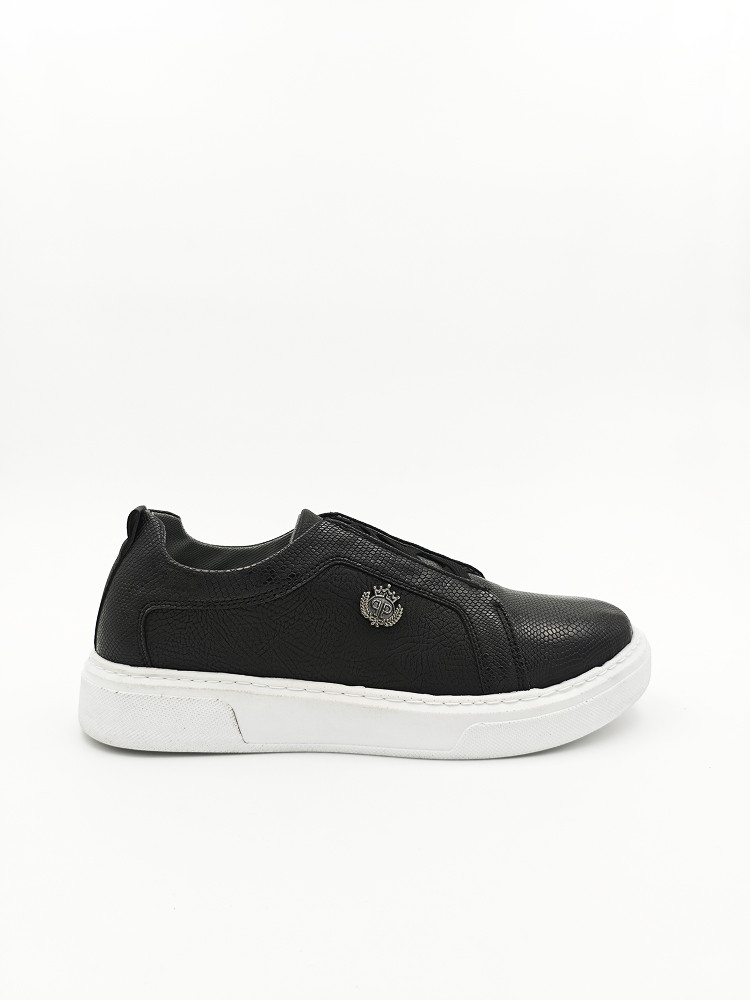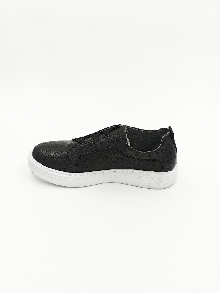 Стильные и практичные кроссовки, выполненные из экокожи с уникальной фактурой. Их универсальный черный цвет сочетается с контрастной белой подошвой, создавая современный и элегантный образ.